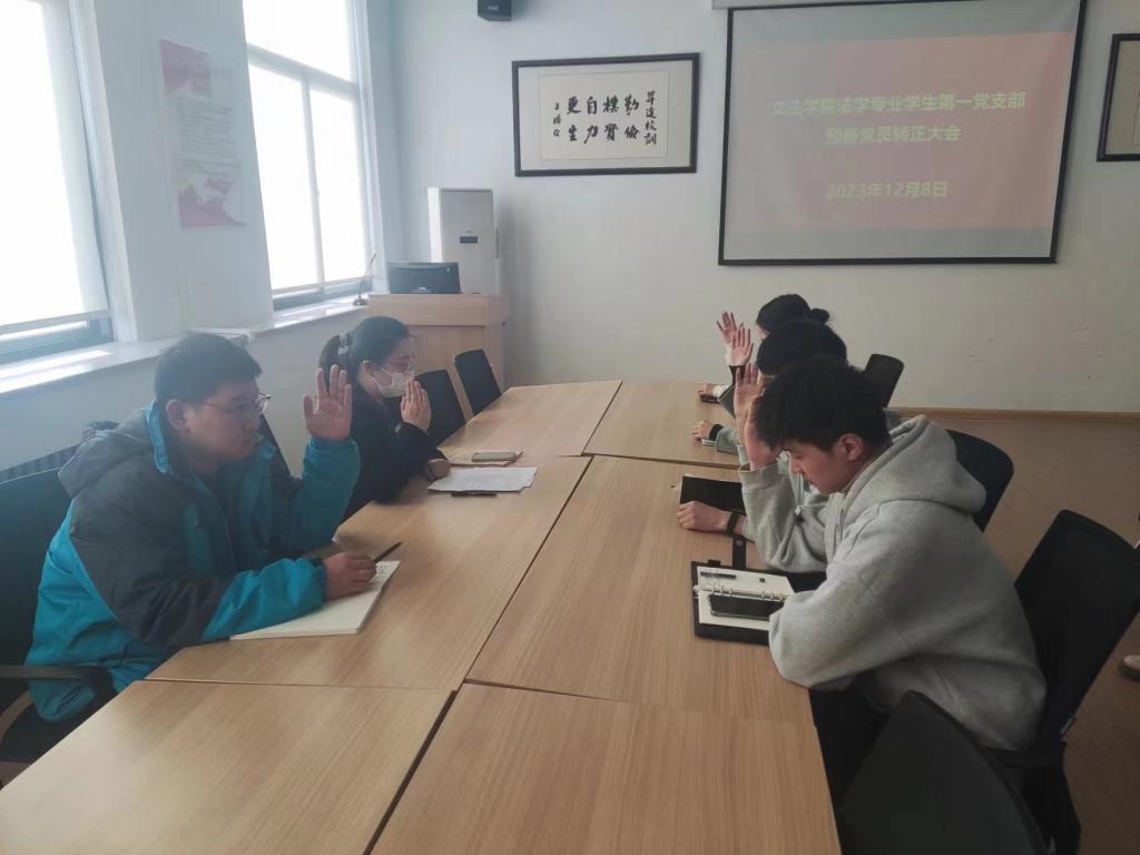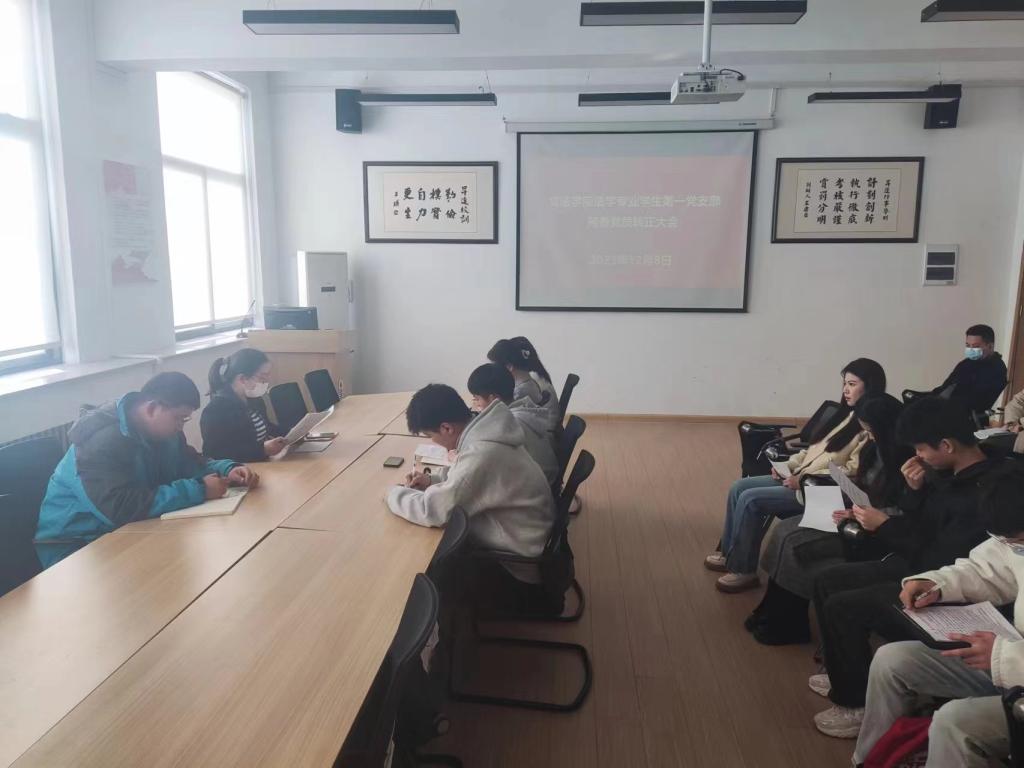 12月8日下午,365VIP英国上市官网法学专业员工第一党支部在教学1号楼314召开预备党员转正大会,支部全体师生党员参加会议。会议由支部书记王松洁老师主持。