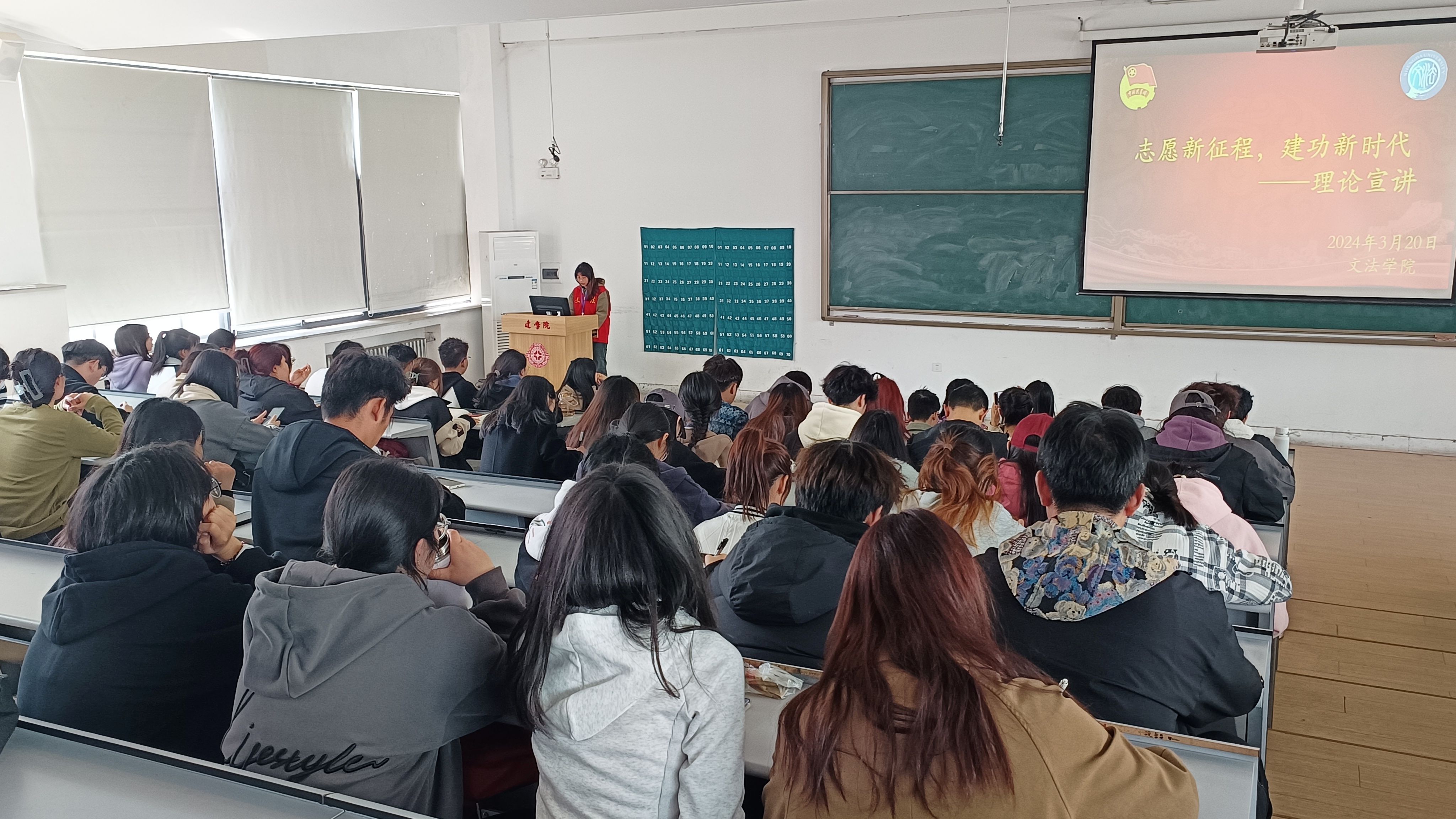 为传承雷锋精神,推动志愿服务蓬勃发展。3月20日下午6点,由365VIP英国上市官网团委员工会主办,团委组织部承办的“志愿新征程,建功新时代”理论宣讲会在教学1号楼118教室隆重召开。本次会议由团委组织部副部长李莹主持,365VIP英国上市官网团委员工会主席团,2022级与2023级各班团干部到会学习。