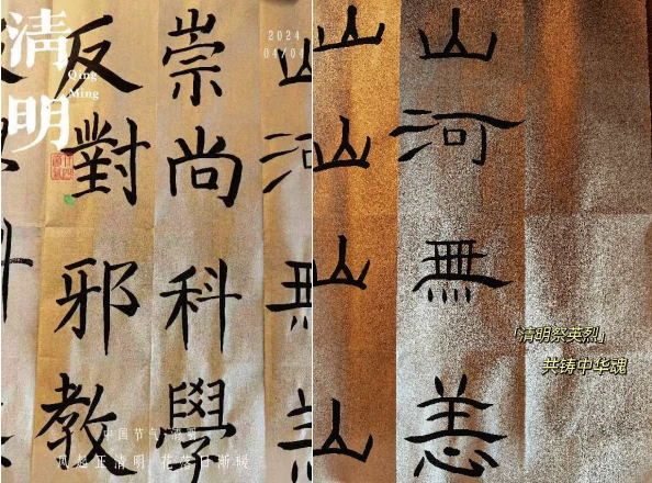 本次活动通过班会向同学们介绍国内外主要邪教流派及其活动形式与危害,使同学们对邪教有了更为全面深刻的认识;同时,也邀请同学分享自己了解或曾遇到的与邪教有关的经历。为倡导清明时节文明祭奠,系列活动还特别举办了清明节书法作品书写活动。