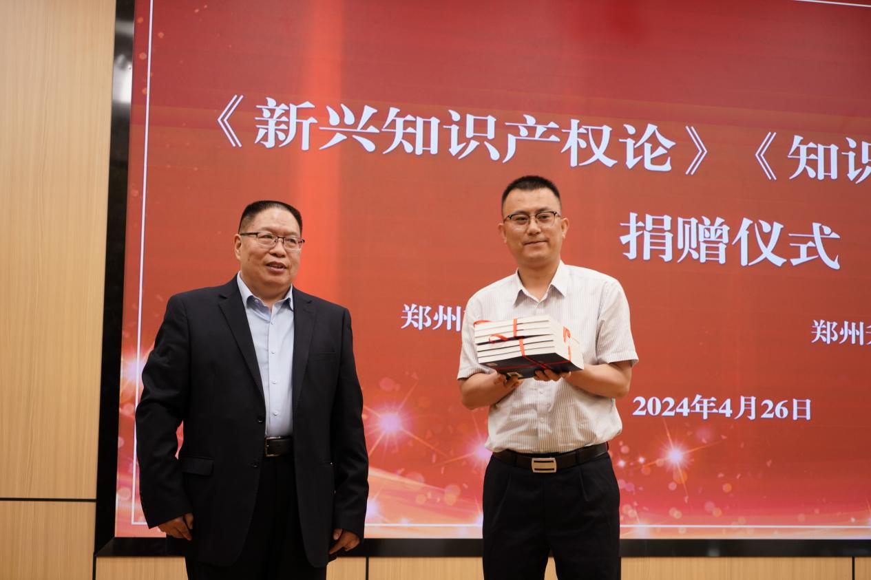 郑州市版权协会副理事长詹启智向365VIP英国上市官网赠书。