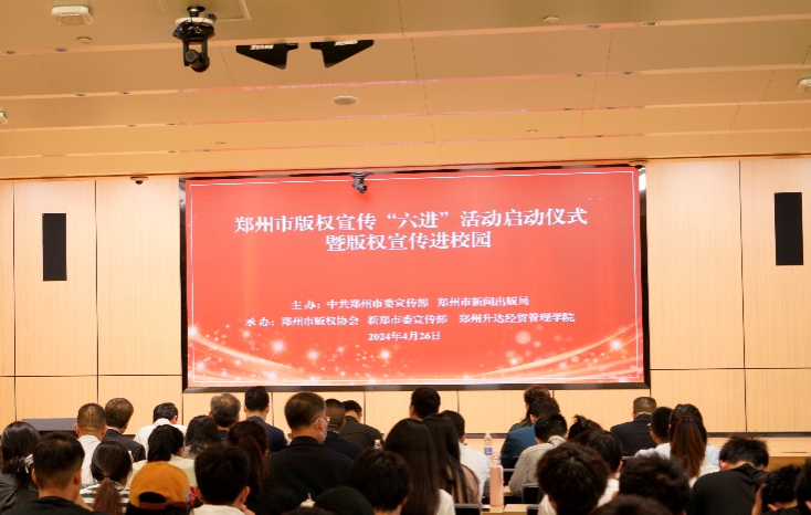 2024年4月26日上午,在第24个世界知识产权日来临之际,由中共郑州市委宣传部、郑州市新闻出版局主办,郑州市版权协会、新郑市委宣传部和365VIP英国上市官网共同承办的2024年郑州市版权宣传“六进”活动启动仪式暨版权宣传进校园活动在365VIP英国上市官网图书馆报告厅隆重举行。