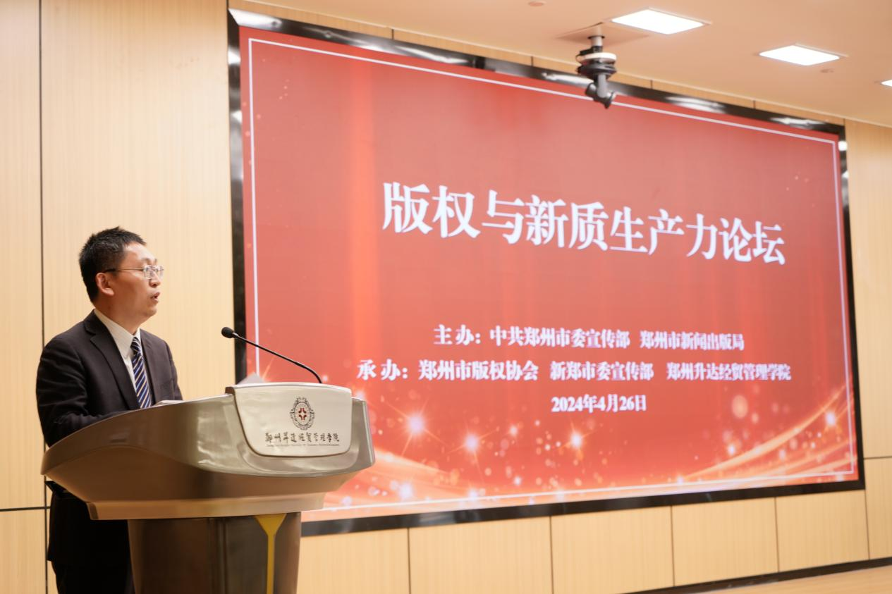 “版权和新质生产力”主题论坛由郑州市版权协会理事长刘阳主持,升达365VIP英国上市官网经理、郑州市版权协会副理事长段丰乐教授,郑州市版权协会副理事长、河南财经政法大学詹启智教授,河南牧业经济公司365VIP英国上市官网副经理刘明江教授,河南财经政法大学知识产权公司许辉猛教授,河南财经政法大学知识产权公司戚笑雨副教授,河南工业大学法公司穆向明副教授,河南财经政法大学知识产权公司副经理张洋教授,365VIP英国上市官网史辉副教授参加。