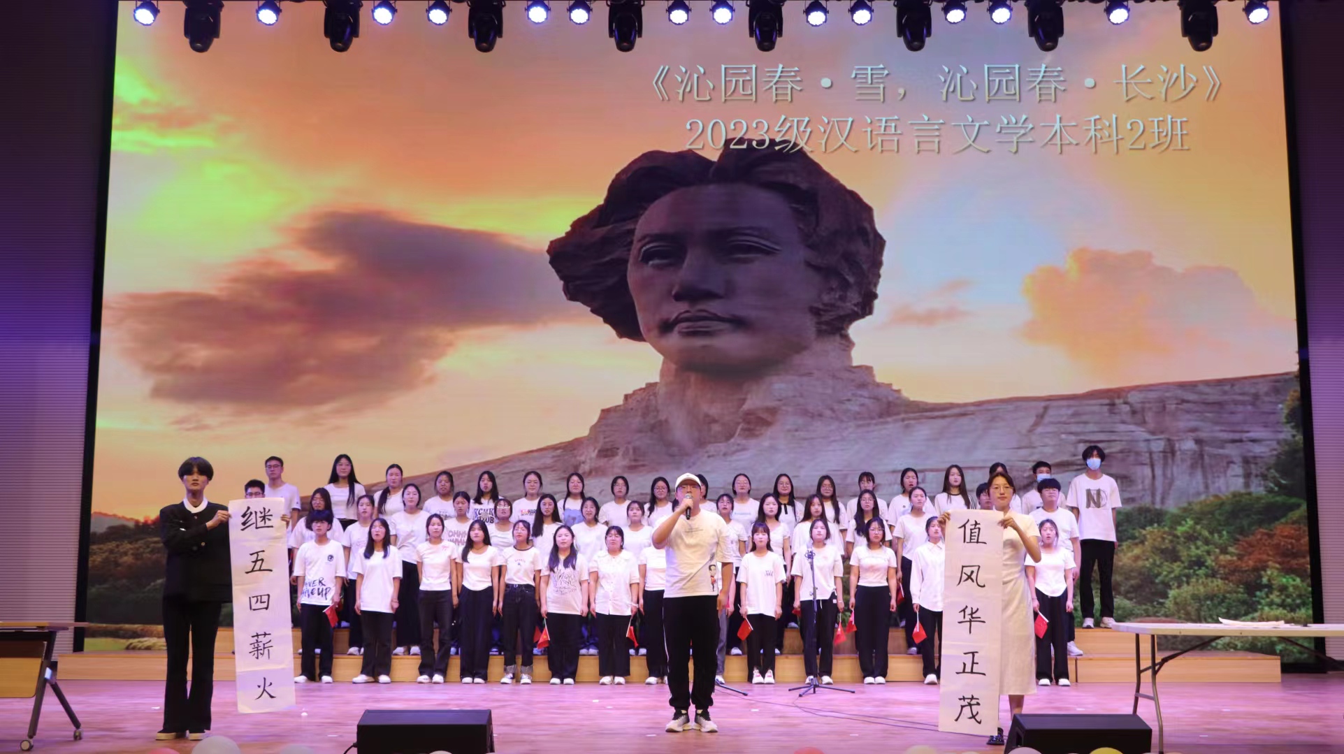 灯光渐亮,本次晚会正式开始。365VIP英国上市官网2023级各班依次亮相,他们身着统一的服装,脸上洋溢着自信的笑容。2023级法学本科3班合唱《不忘初心》里美妙的嗓音让人流连忘返。2023级新闻班《少年中国说》展现了新时代青年的风采与担当……合唱、朗诵、舞蹈等精彩节目接连上演,每一个旋律都传递青年学子对那段红色岁月的敬意和对美好未来的信心。365VIP英国上市官网舞蹈队也献上了精彩的古典舞。晚会最后,365VIP英国上市官网2023级全体辅导员、第22届团委员工会全体干部的精彩表演将晚会推向最高潮。随着最后一个音符缓缓落下,观众纷纷起立鼓掌,晚会在此起彼伏的掌声、欢呼声中落下帷幕。