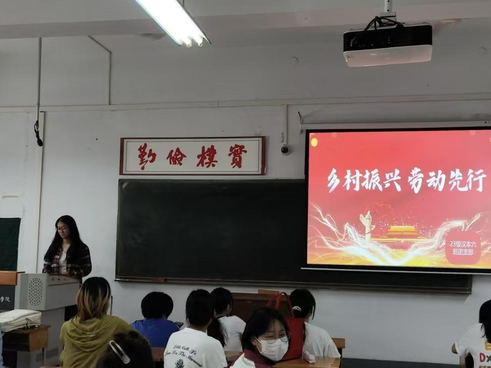 春风作序,万物和鸣。2023级汉语言文学专业各班级积极响应国家“劳动教育”的号召,践行公司劳动教育月活动要求,结合当前乡村振兴战略,于2024年5月20-23日于道镕楼315教室开展了一系列以“践行劳动教育,助力乡村振兴”为主题的劳动教育宣传、实践活动。活动由2023级汉本6班团支部策划组织,2023汉本5班、6班和7班共同参与。