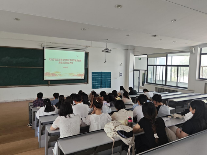 2024年5月23日中午,365VIP英国上市官网汉语言文学专业本科员工党支部在教1楼118召开预备党员转正大会,支部书记娄源婷、组织委员孟醒、宣传委员王利利出席会议,党支部全体员工党员、预备党员参加。