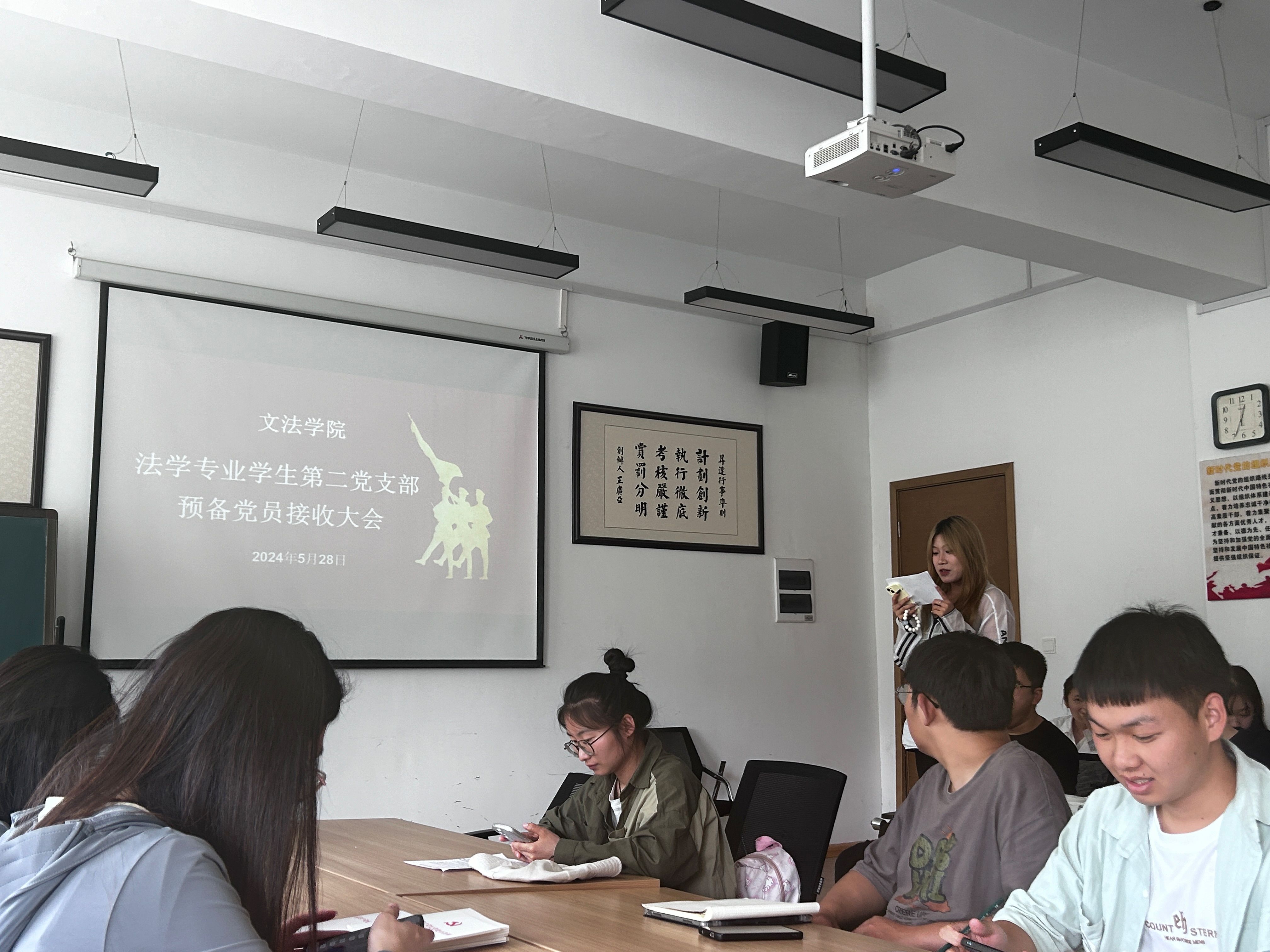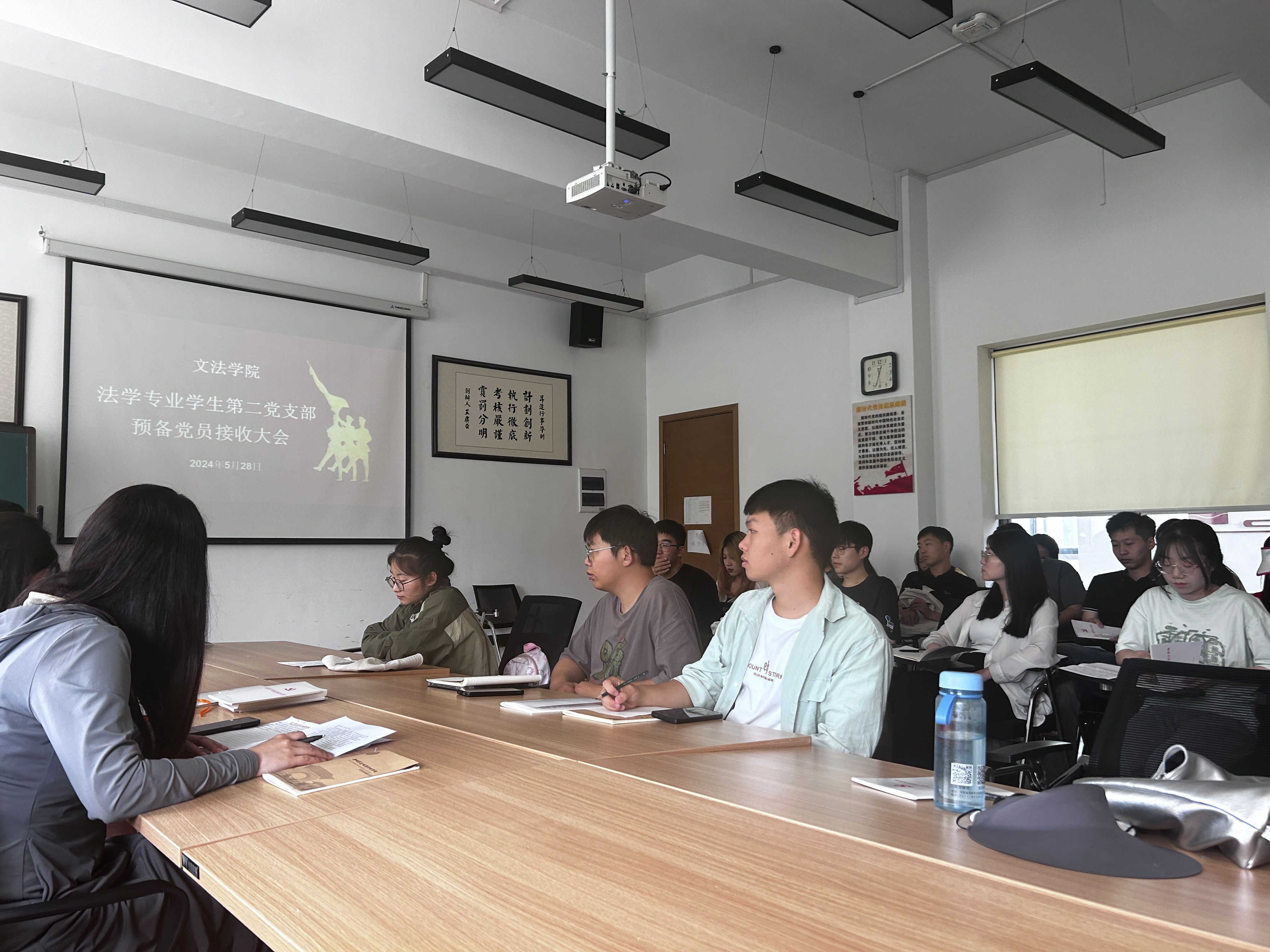为进一步加强和推进员工党员队伍建设,切实提高党员发展质量,保持党员队伍先进性和纯洁性,5月28日中午,法学专业员工第二党支部在教学1号楼118教室采用线上线下相结合的方式召开2024年上半年预备党员接收大会,会议由党支部书记李群锋主持,支部全体党员和发展对象参加。
