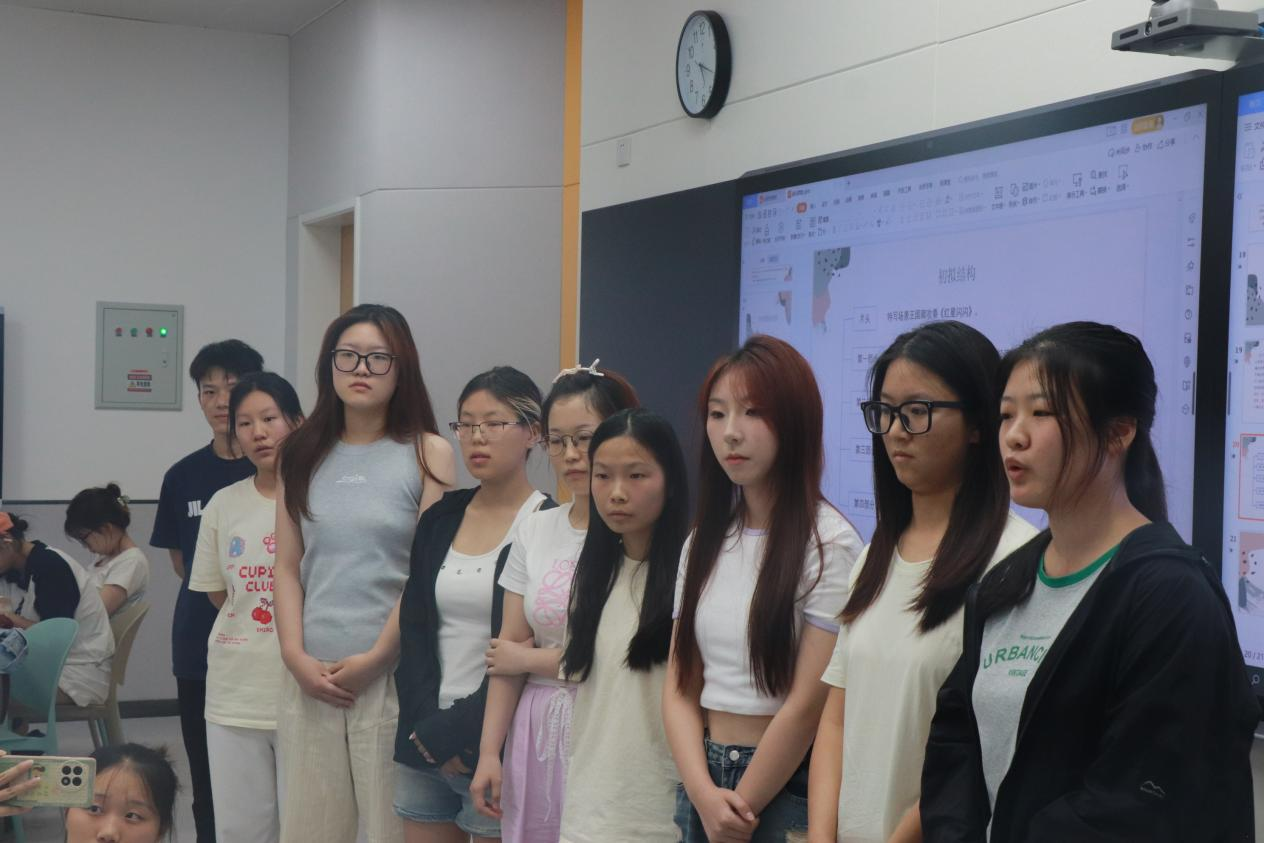 每位小组导演上台答辩汇报时都十分认真专注,将小组成果展现给老师和同学们。小组导演汇报结束后小组成员全部上台,两位老师随机提问小组成员,每位同学在回答老师的问题时收放自如。
