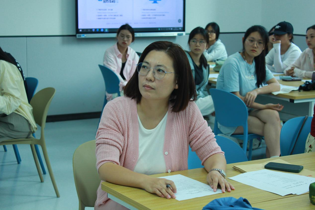 新闻学和网络与新媒体专业教研室支部书记兼主任赵静观看结课作品