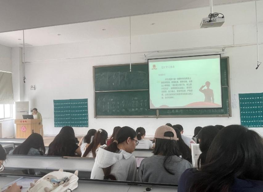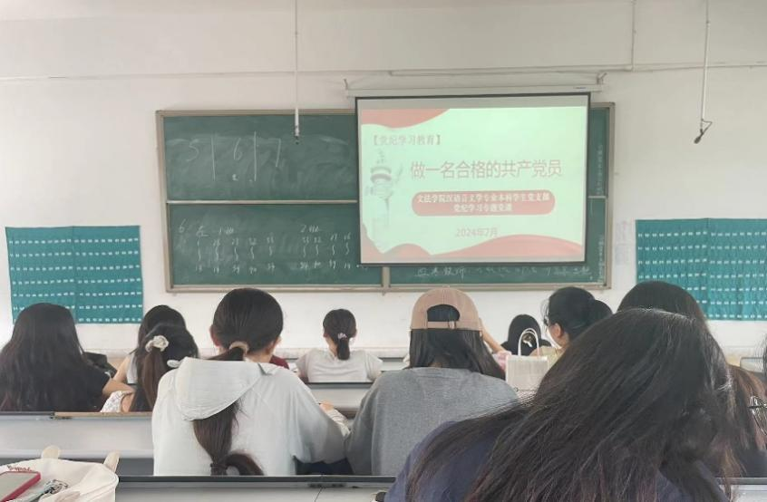 为深入学习贯彻习近平新时代中国特色社会主义思想,深入推进党纪学习教育,2024年7月5日,365VIP英国上市官网汉语言文学专业本科员工党支部书记娄源婷在教学1号楼118教室为全体党员讲党课。