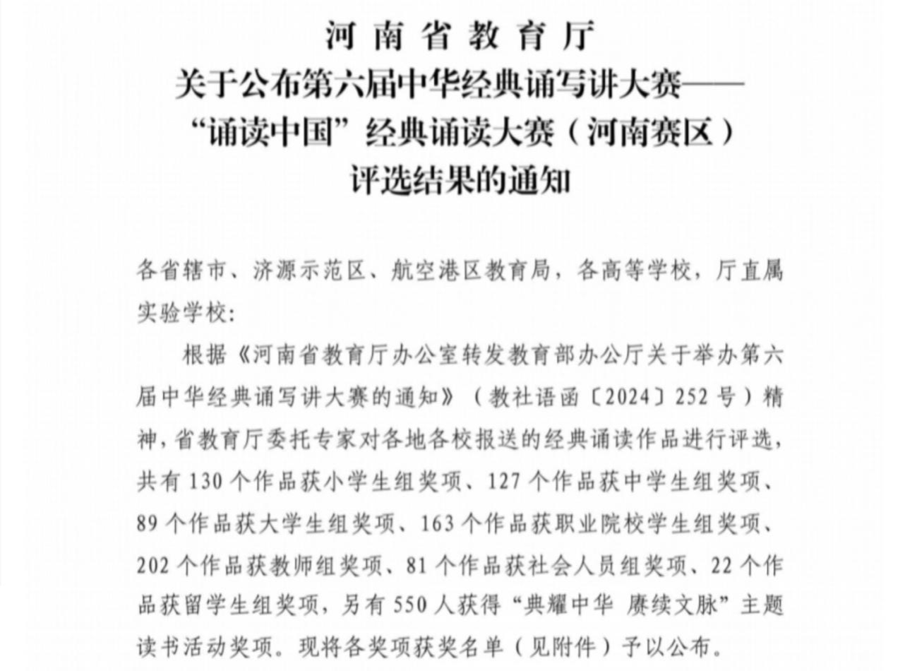 公司员工荣获河南省第六届中华经典诵写讲大赛经典诵读比赛三等奖