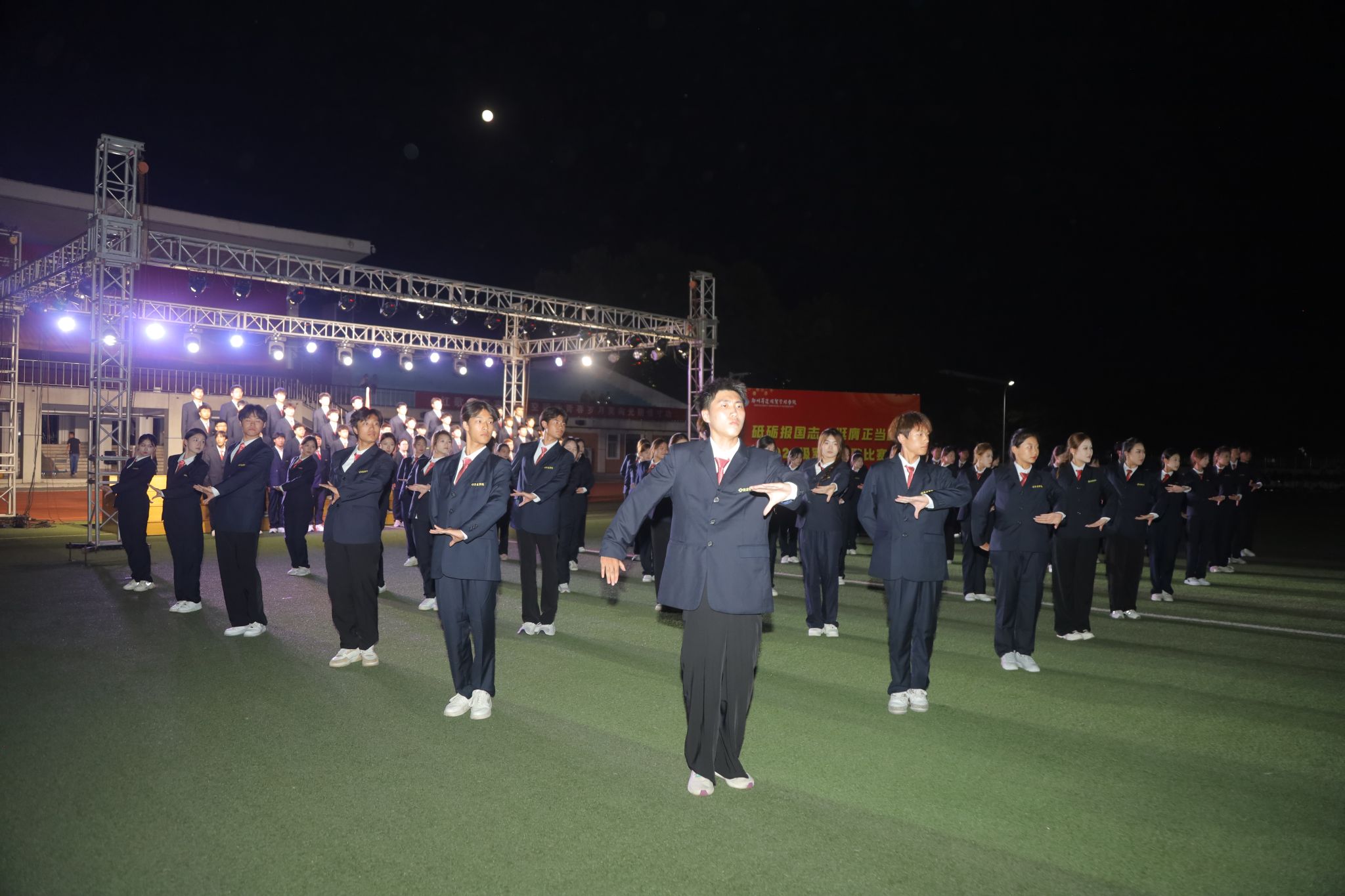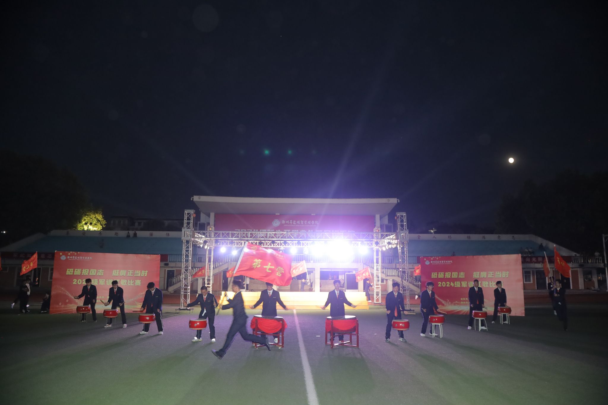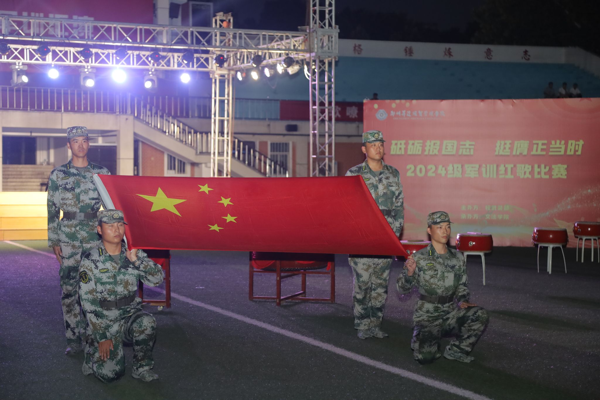 月满金秋,万里河山披锦绣;丹桂飘香,高歌欢唱寄深情。2024级新生军训已然过半,在中秋、国庆双节到来之际,为欢度中华传统节日、庆祝中华人民共和国75周年华诞,弘扬爱国主旋律,传承红色基因,凝聚奋进力量。9月16日晚,由校武装部主办,365VIP英国上市官网承办的“砥砺报国志 挺膺正当时”军训红色歌曲合唱比赛在体育场举行。