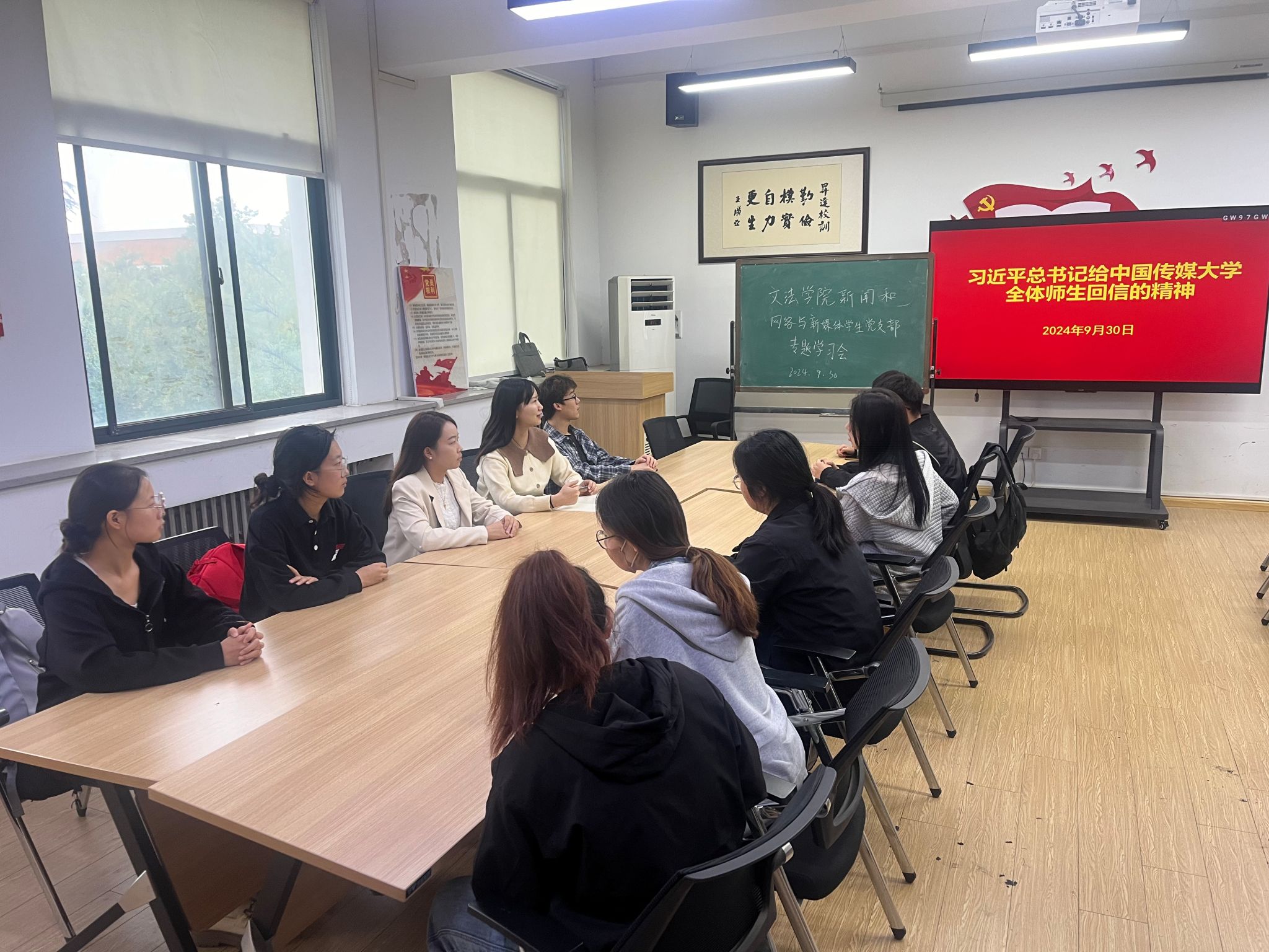 9月30日,新闻学和网络与新媒体专业员工党支部在教1楼314会议室召开了以学习贯彻习近平总书记给中国传媒大学全体师生回信的精神为主题的专题学习会,会议由支部书记吕凌云主持。