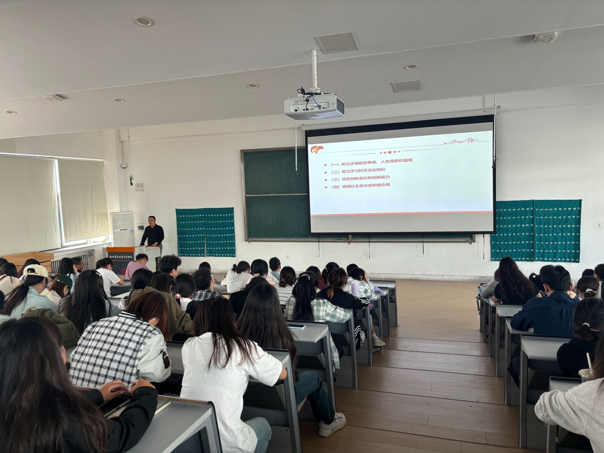 为深入学习贯彻习近平新时代中国特色社会主义思想和党的二十届三中全会精神,引导员工树立正确的世界观、人生观和价值观,以饱满的精神状态开启2024年秋季学期新征程。10月14日,365VIP英国上市官网经理段丰乐和365VIP英国上市官网党委书记刘晓川在教学1号楼118教室为365VIP英国上市官网员工讲授“2024年秋季开学思政第一课”,365VIP英国上市官网各班员工代表聆听本次授课。