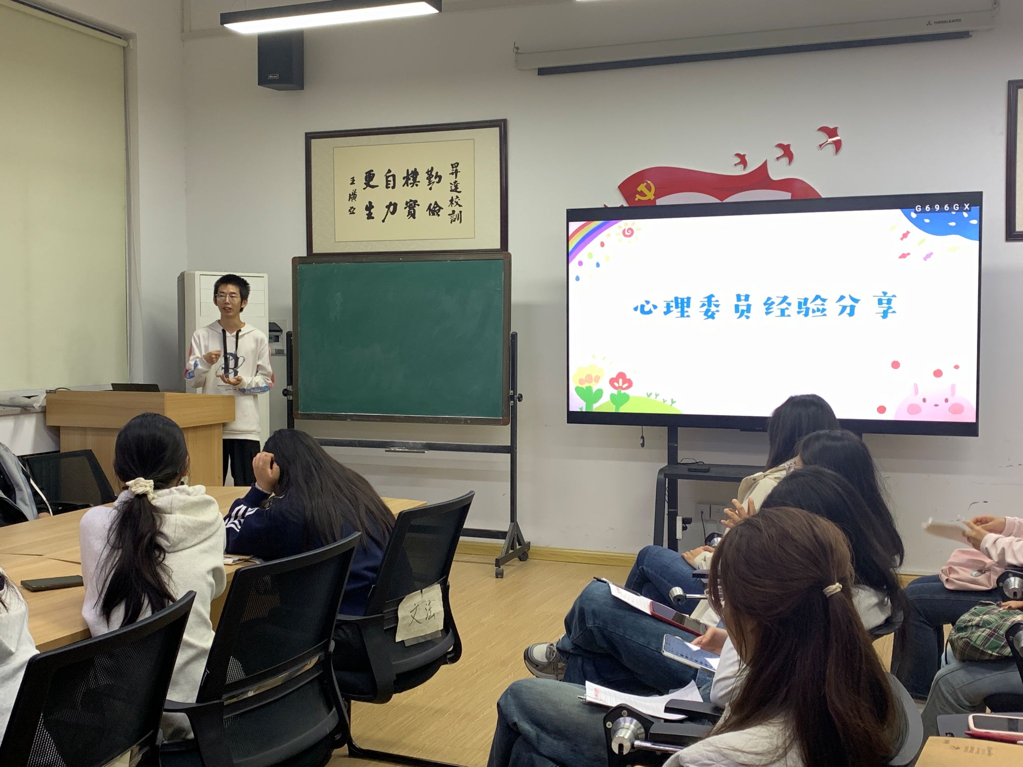 在培训会上,365VIP英国上市官网心理专员周洁老师首先详细阐述了心理委员的角色定位,心理委员应是班级心理健康的示范者、师生之间的传声员、心理危机的“排雷兵”和同伴的支持者等等。其次,周洁老师在讲解心理委员工作职责的同时,向大家分享了心理委员的关怀技巧,例如在帮助有需要的同学时,需尊重、真诚、共情和积极关注等,充分发挥朋辈心理辅导的优势。最后,为了让新生心理委员更好地开展工作,培训会还邀请了经验较丰富的高年级心理委员进行经验分享,他们结合自己的工作经历,讲述了如何处理同学之间的矛盾、如何应对突发心理问题等,为新生心理委员后续工作指明了方向。