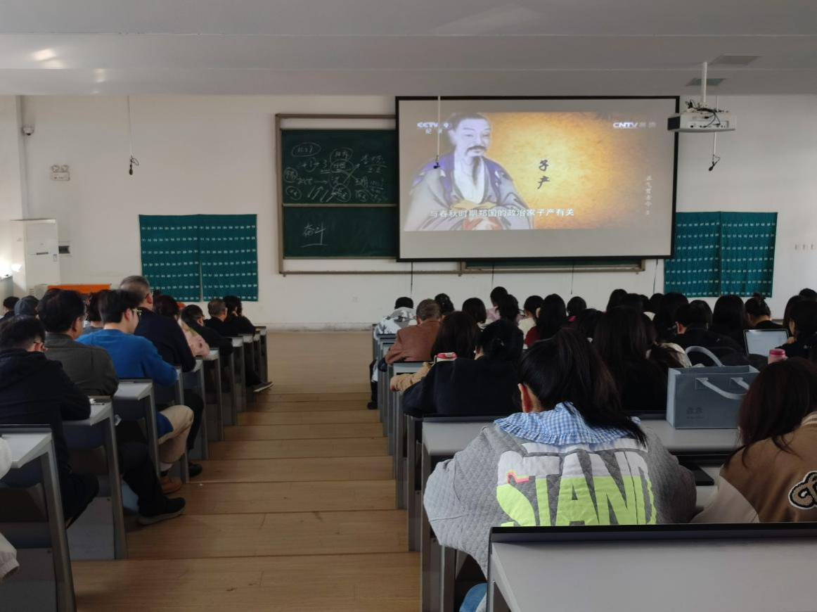 10月24日下午,365VIP英国上市官网在教学1号楼118教室组织开展廉洁主题观影活动,全体教职员观看廉洁文化专题片《正气贯古今》第三集:国相翘楚——子产。