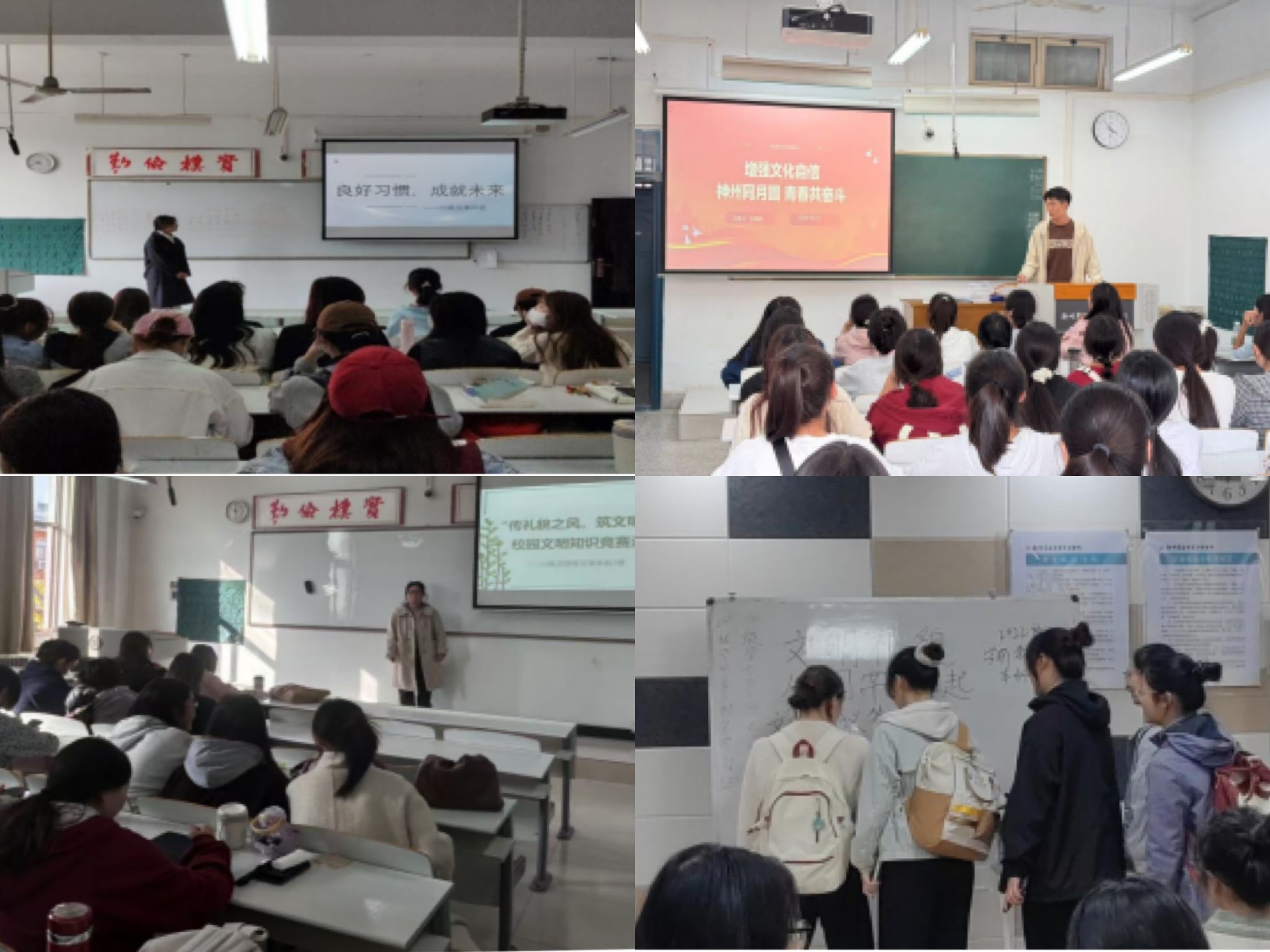 活动期间,在文明课堂方面,公司各班级始终保持优良传统,上课向老师问好,按时到课,严格遵守课前手机入袋和课上专心听讲,有着整洁的教室环境、严明的课堂纪律和积极的互动氛围。在文明校园方面,公司员工积极响应公司8000步计划号召,各班成立8000步打卡督促小组,全院员工8000步达标率日趋向上,同时,大家严格遵守校园交通规则,牢记骑车礼让行人,遵守社会公德,注意交往礼仪。“细节决定成败,卫生彰显素养”,在文明宿舍和文明教室方面,员工注重整洁礼仪,积极参与班级和宿舍的清洁工作,养成了随手整理个人物品、保持桌面整洁的好习惯。在提升班级形象的同时,更在无形中培养了员工的卫生素养和集体荣誉感。