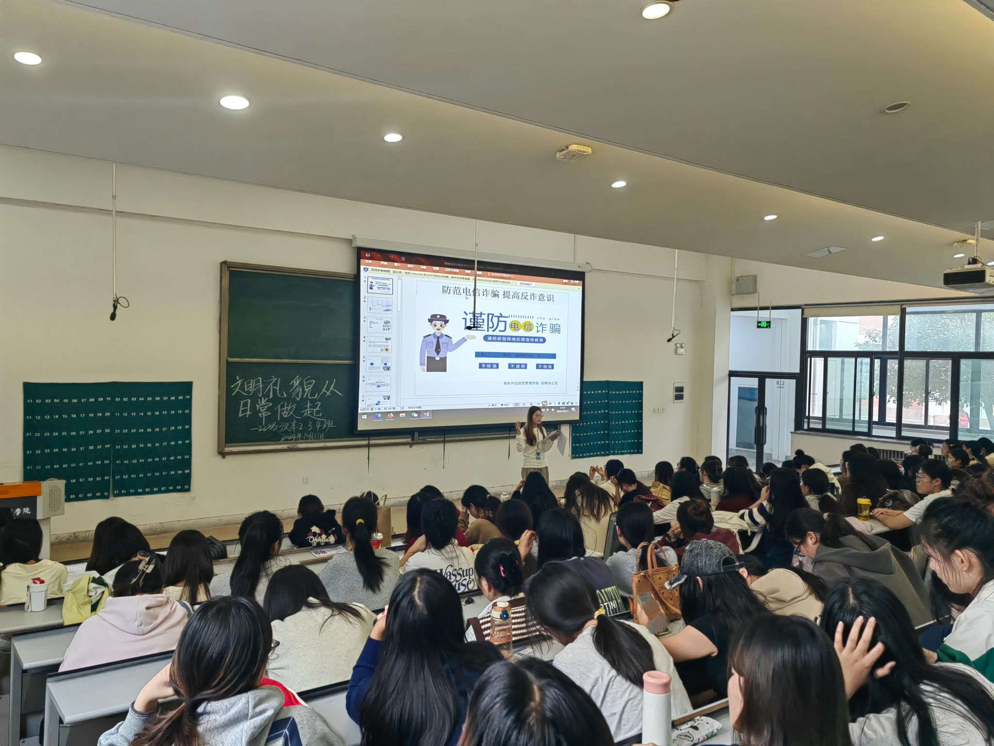 首先,由辅导员王利利老师于2024年10月11日在教学1号楼118教室召开“文明礼貌,从日常做起”主题班会。会上,辅导员老师根据公司整体规划,强调当前阶段公司的重点任务,引导同学们以文明礼貌月为契机,落实各项工作。