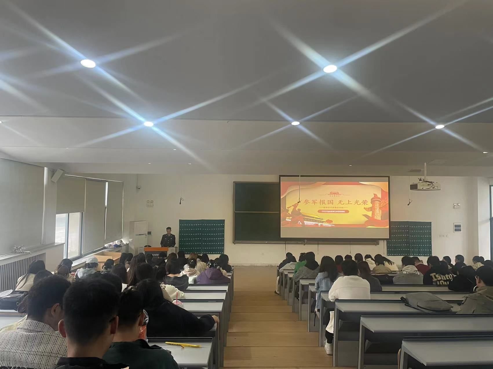 在本次活动中,陈成从依法服兵役是每一名公民应尽的法律义务讲起,讲解了征兵报名的时间以及报名网站、征兵体检的身体要求、入伍基本流程、优待政策等;详细讲述了应征入伍“五笔”账:政治账、经济账、发展账、责任账以及风险账。耿子昂向到场的同学们分享了自己参军入伍的经历并介绍了相关学习经验。在互动问答环节,陈成和耿子昂现场对同学们提出的有关征兵问题进行了详细的解答。