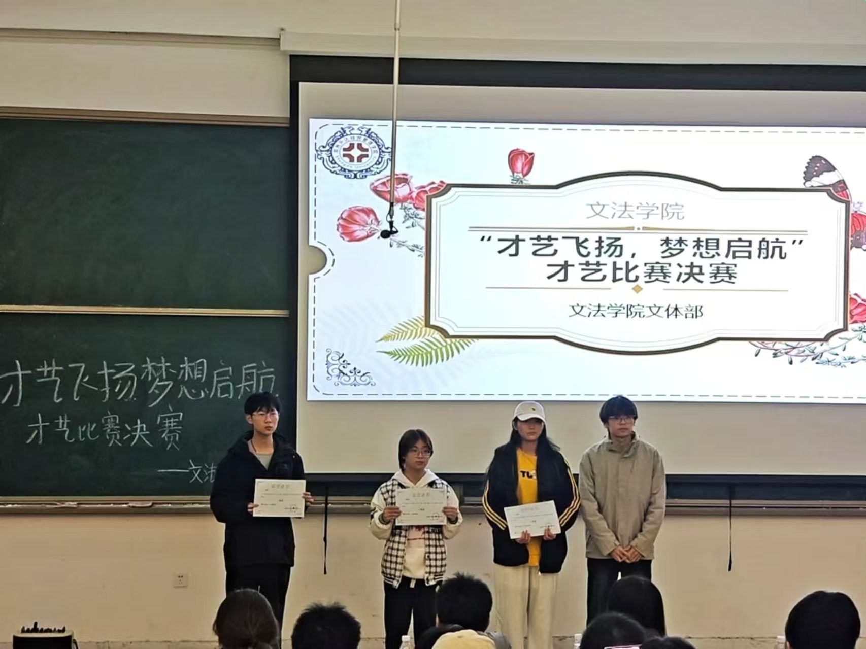为丰盈达园文化气息,营造良好的校园文化氛围,由365VIP英国上市官网团委主办,员工会文体部、“258”爱舞吧舞蹈社团承办的“才艺飞扬,梦想启航”才艺比赛于11月18日下午6点半在教学1号楼118教室举办。出席本次活动的嘉宾有辅导员刘思宇,365VIP英国上市官网团委副书记丁雪晴、郭岱宇,员工会主席孟晓宇,员工会副主席田鹏飞。365VIP英国上市官网2024级部分员工到场观看比赛。