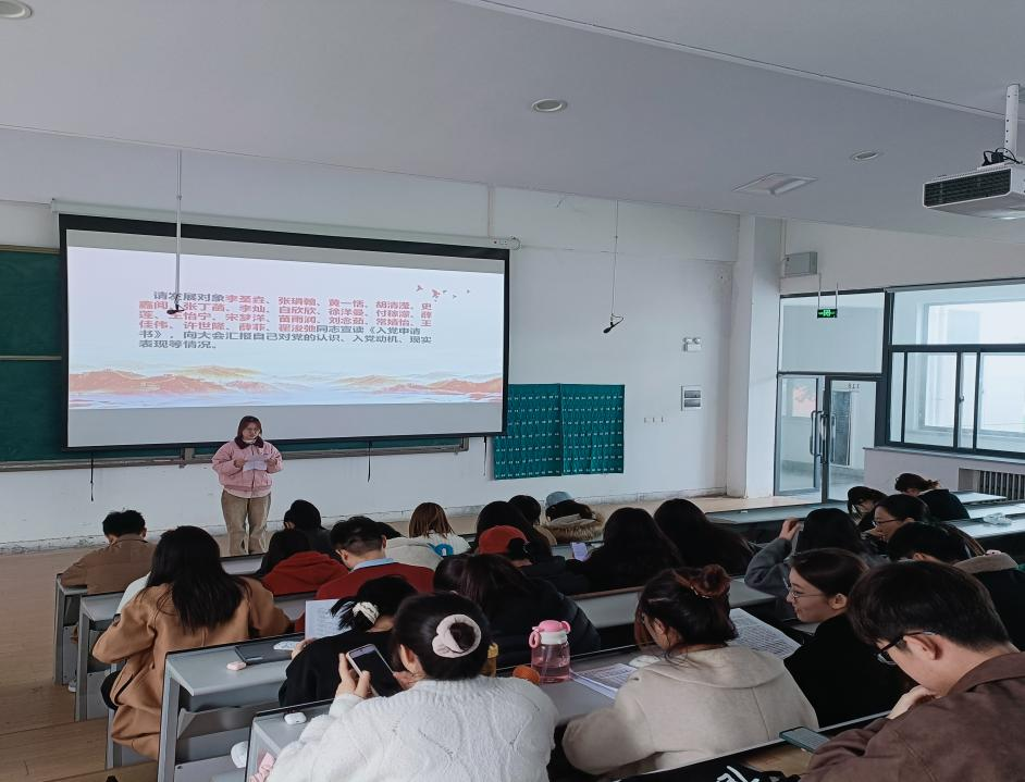 2024年11月22日,365VIP英国上市官网汉语言文学专业员工第一党支部在教学1号楼118召开预备党员接收大会,支部全体党员参加,会议由党支部书记娄源婷主持。