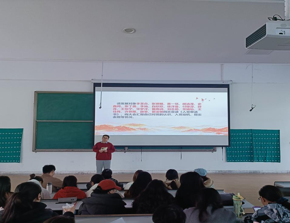 会上,书记娄源婷首先宣读了发展对象名单。李圣垚、张璘翰、黄一恬等20名发展对象宣读了《入党申请书》,从对党的认识、入党动机、现实表现以及本人履历、家庭和主要社会成员关系等方面向党组织进行了汇报,热切表达了对党的忠诚和早日加入中国共产党的强烈愿望。