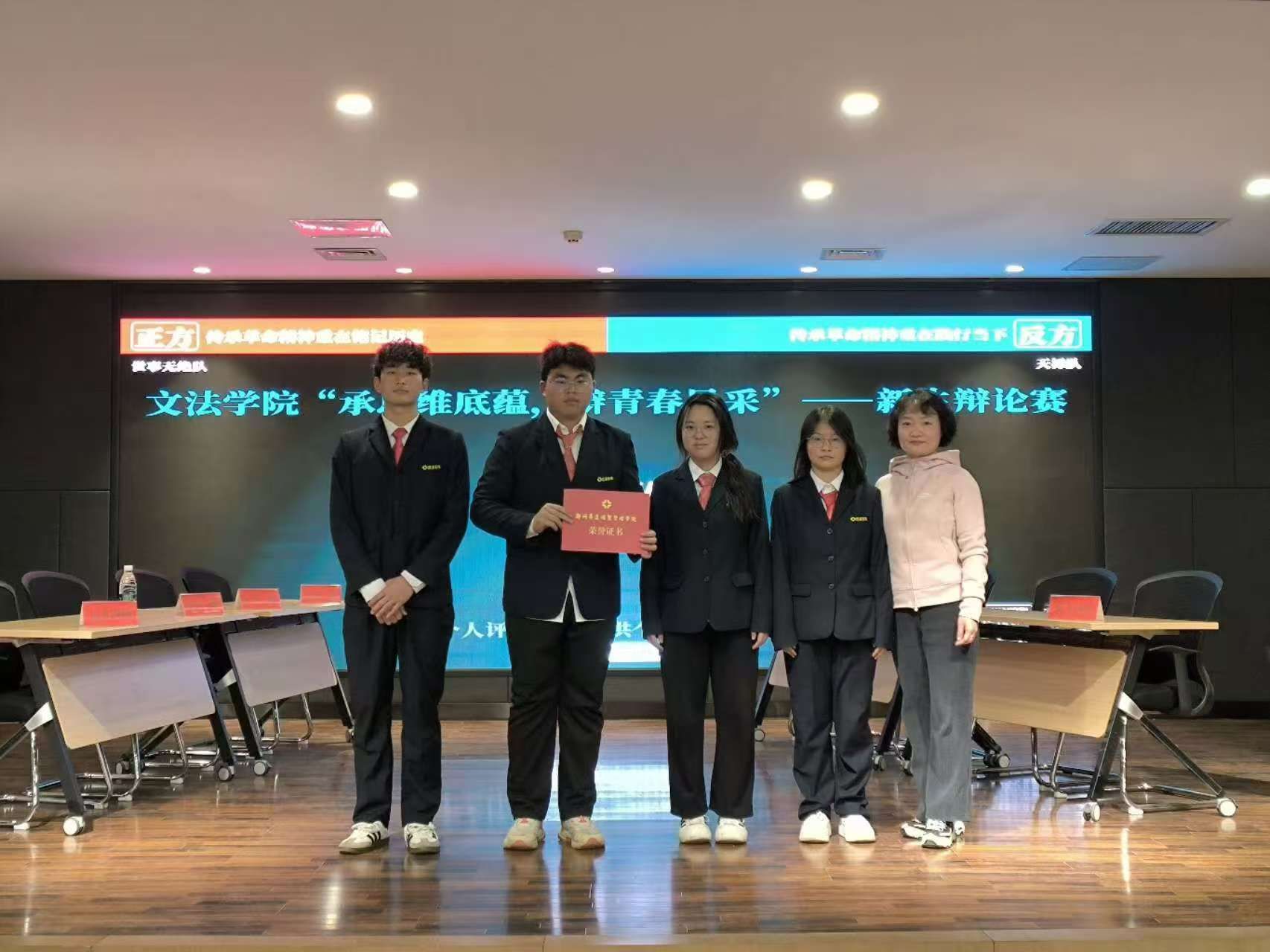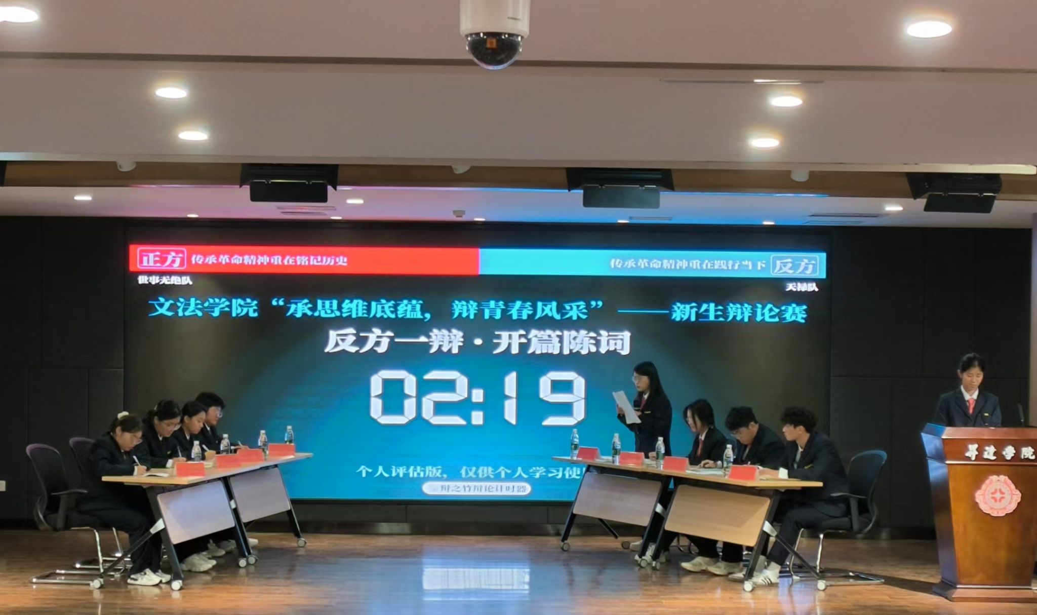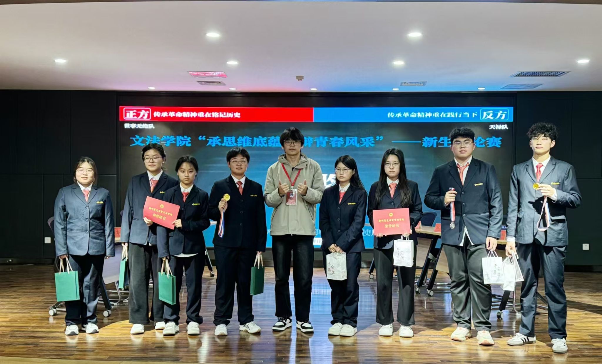 一时强弱在于力,万古胜负在于理。本次决赛的参赛队伍是2024级法学本科1班和2024级汉语言文学本科5班,他们将围绕“传承革命精神,应该注重铭记历史还是践行当下”展开激烈的辩论。在辩论过程中,双方辩手语锋敏捷,雄辩高谈,有理有据地反驳对方的观点,展现出非凡的辩论才华。现场气氛紧张而热烈,大家都全身心沉浸在辩手们唇枪舌战的激烈氛围中,观众席上不时发出热烈的掌声和欢呼声。赛后,365VIP英国上市官网经理段丰乐对整场辩论进行了细致的点评,指出双方辩手的优点和不足,并为大家分享了辩论赛的相关技巧。最终,经过评委的共同评议,2024级法学本科1班“世事无绝队”荣获本次辩论赛的冠军。
