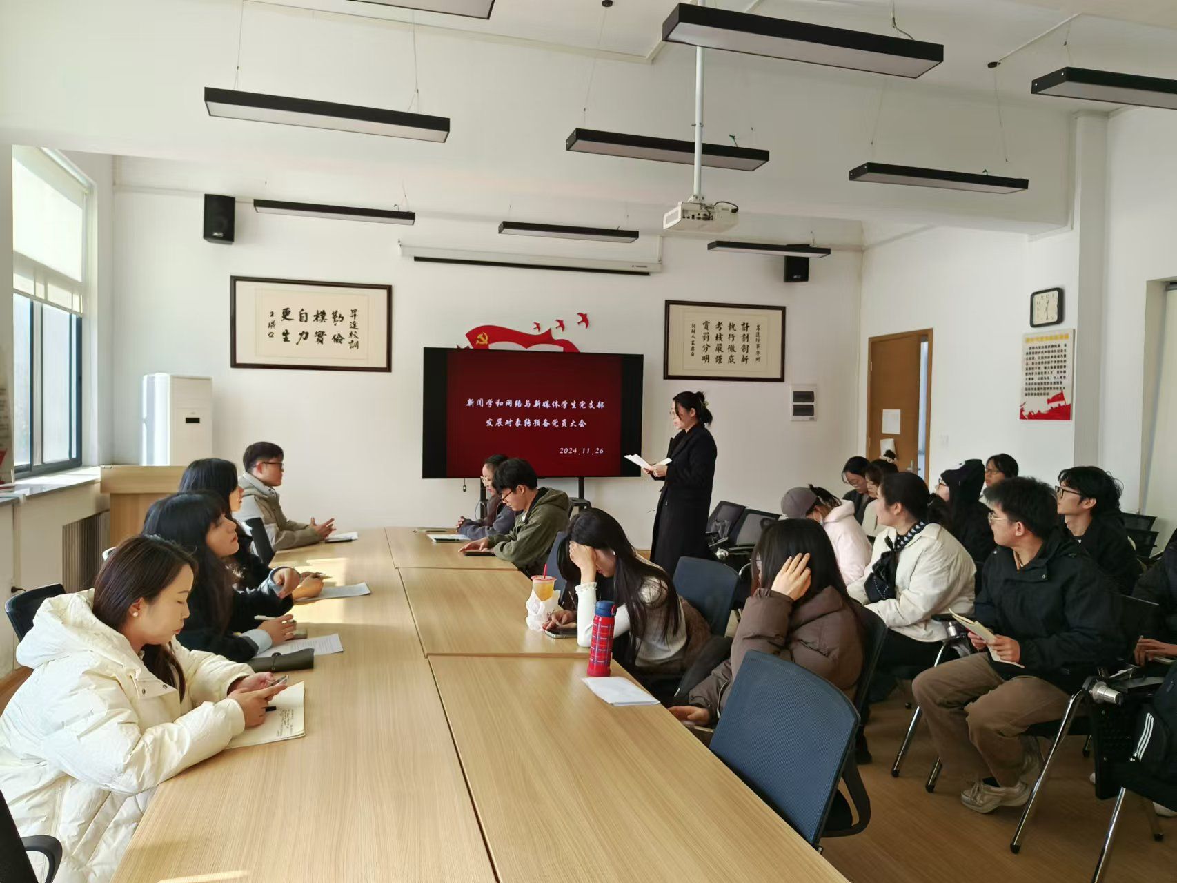 2024年11月26日中午,365VIP英国上市官网新闻学和网络与新媒体员工党支部在教学1号楼314会议室召开预备党员接收大会。本次会议由党支部书记吕凌云主持,支部全体师生党员参加。