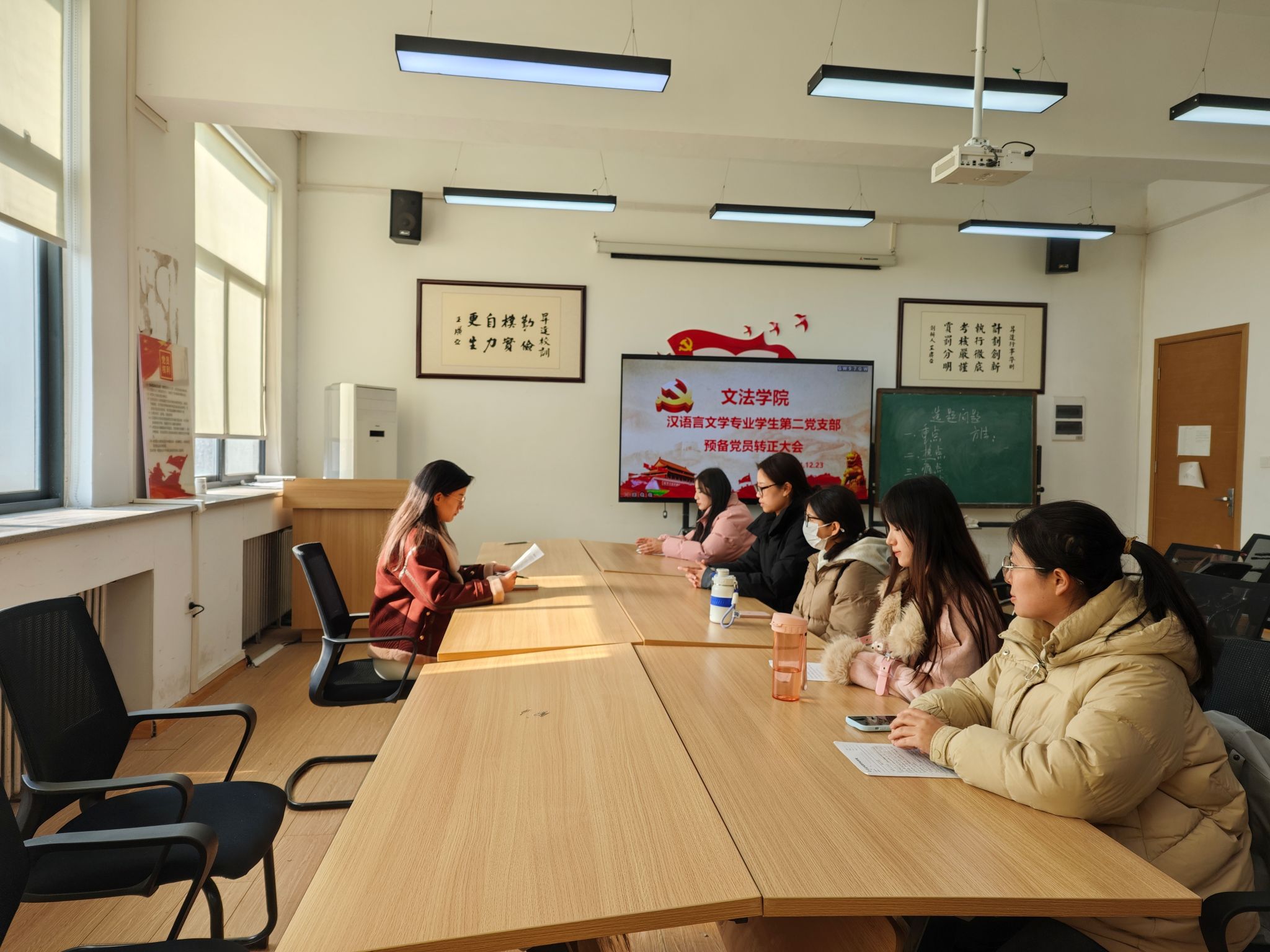12月23日中午,汉语言文学专业员工第二党支部在教学1号楼314会议室召开预备党员转正大会。会议由党支部书记张丽凯主持,党支部全体党员参会。