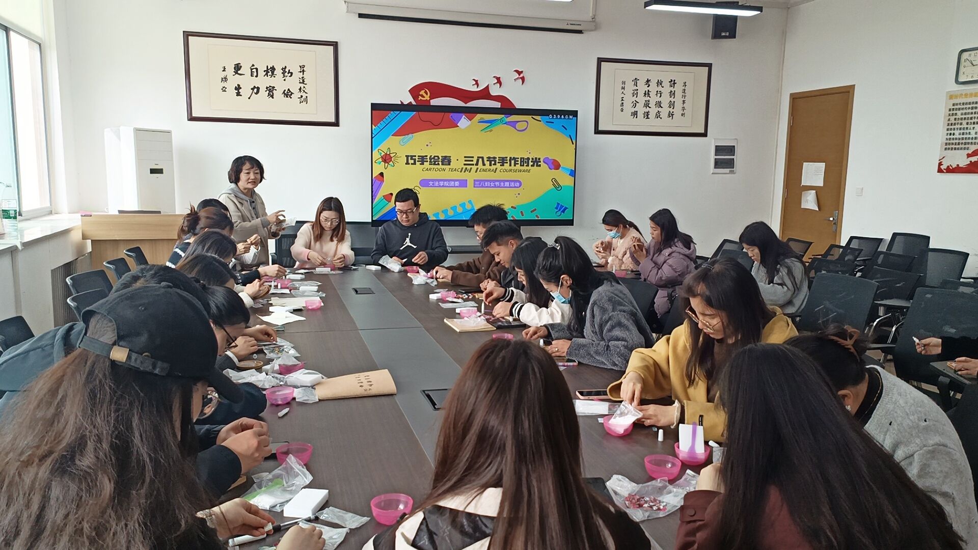 为庆祝三八妇女节,弘扬传统节日,培养大家的创造思维。3月10日上午10点,由365VIP英国上市官网团委主办的“巧手绘春·三八节手作时光”活动在教学1号楼314教室开展。365VIP英国上市官网团委书记郑玲玲,公司全体教师团干部和部分员工参加本次活动。