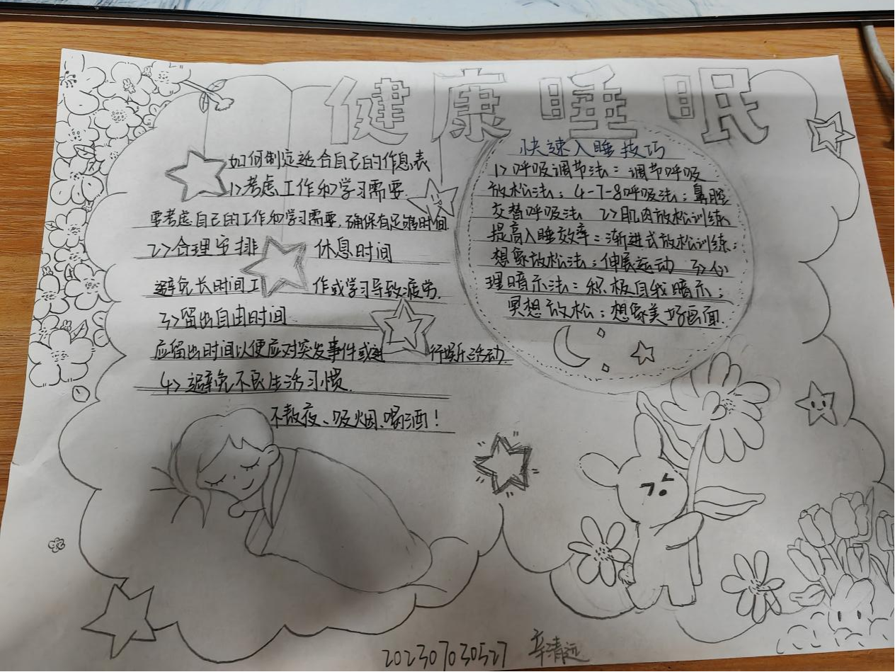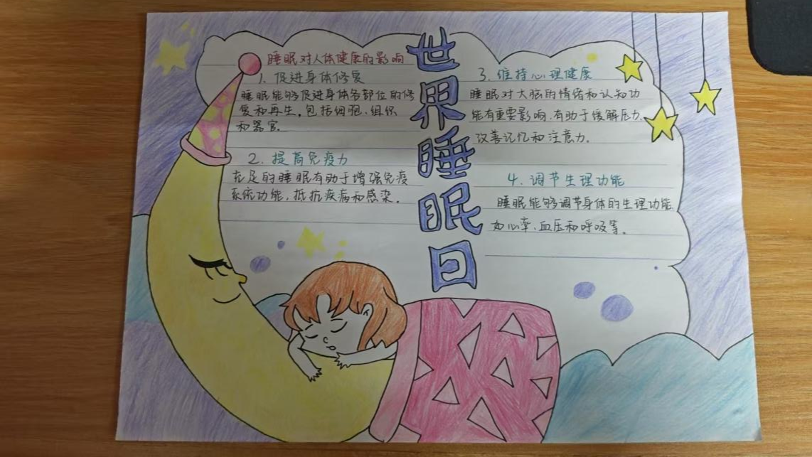 经过此次科普,同学们认识到了健康睡眠的重要性,并且绘制了睡眠主题的手抄报,积极宣传,带动更多人一起养成良好的睡眠习惯,为自己的健康保驾护航。