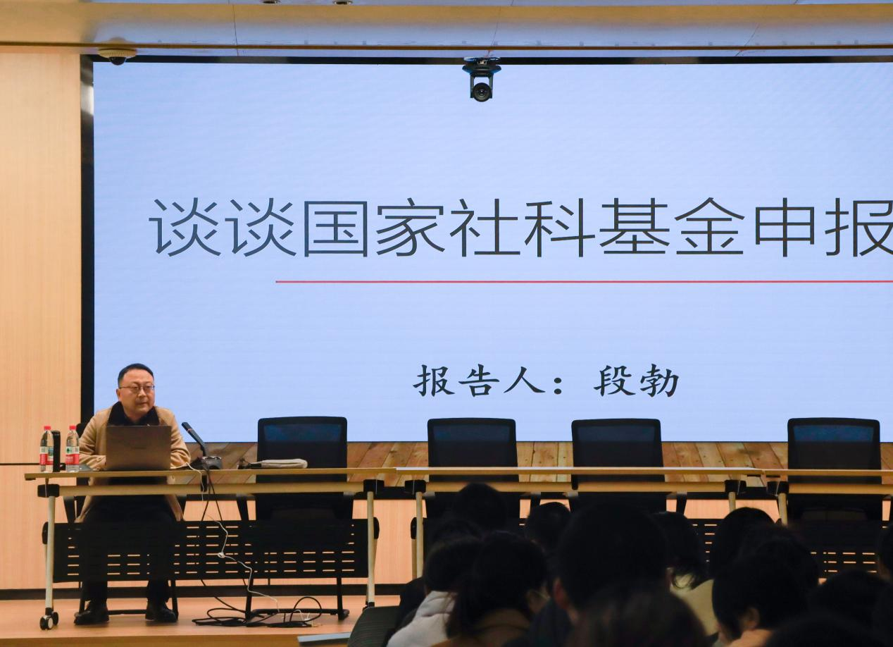 简单介绍了河南师范大学科研工作“12345”的基本思路和经验之后,段勃从国家社科基金、教育部、省厅社科项目申报的时间节点谈起,结合自己三次成功中标国家社科基金项目的经验,重点就课题申报的选题、研究思路与框架设计、学术史梳理、内容撰写、申报书细节等方面对老师们进行了全面细致的讲解。同时他还结合实例提醒老师们在科研项目申报书撰写中易出现的问题,如选题本身不切实际、缺乏创新;学术史梳理缺少脉络、评价不够公正;研究意义未从理论和实践两个方面来谈、意义拔得过高;研究思路不清晰,创新过于勉强;预期成果设计不合理、前期成果关联性不强;参考文献方面过多过少或者缺少经典文献等。最后,段勃鼓励在场老师要大胆尝试、积极主动申报各级各类科研项目,在项目申报过程中培养科研能力,提升科研素养。