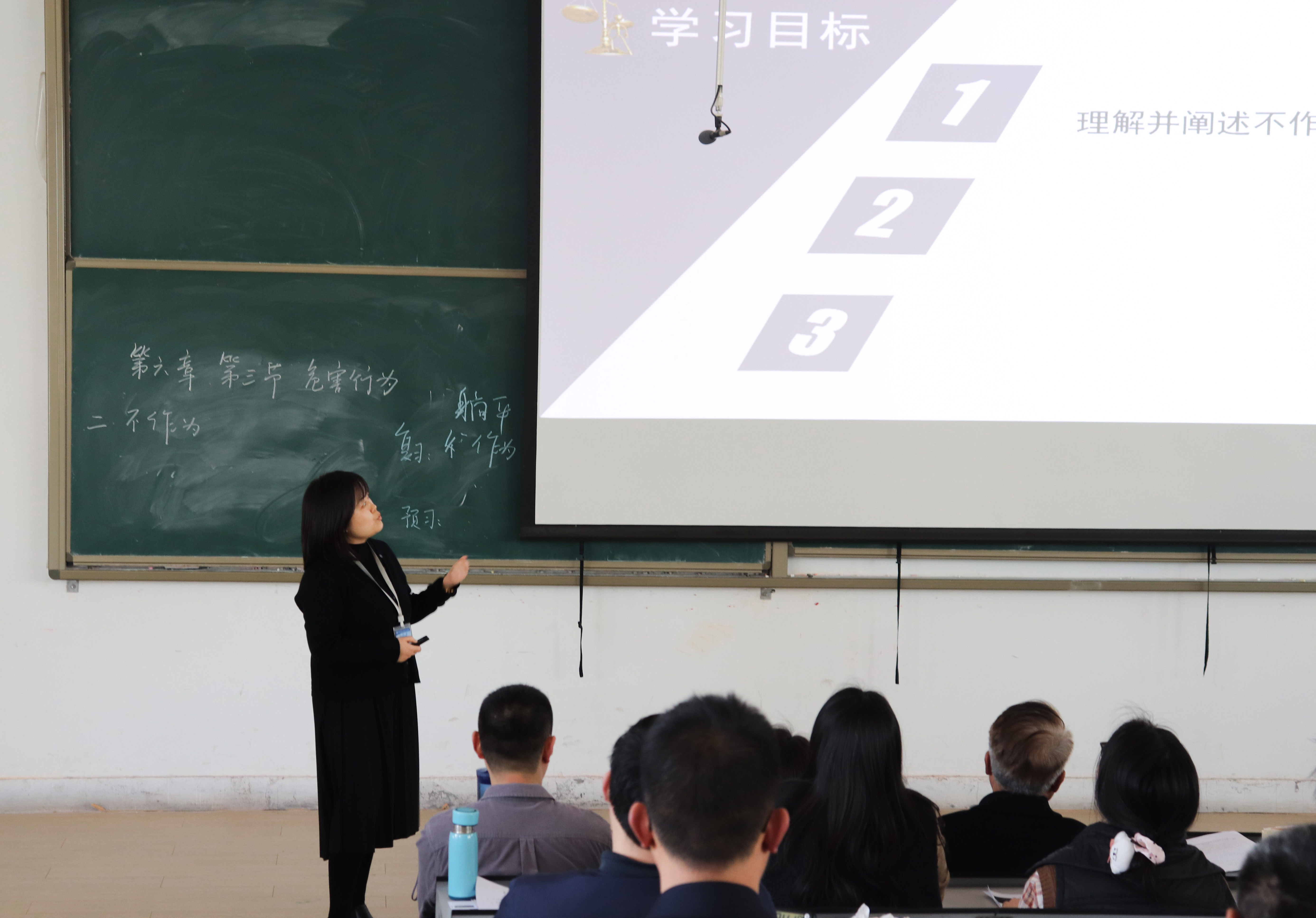 比赛分为说课和讲课两个环节,每位参赛教师都在规定的12 分钟内充分展示了自己的教学实力与课程思政设计理念。说课环节中,教师们阐述了课程思政的教学设计思路、教学目标以及预期效果;讲课环节则更加注重教学的实际呈现,老师们精心选取课程教材中的知识点,巧妙挖掘思政元素,并通过科学自然的案例分析与专业理论讲授,真正做到让员工在获取专业知识的同时实现思想的升华。郭青梅老师以母亲和女朋友同时落水该救谁的正反两个案例,剖析应为、能为、不为三个“不作为”案件的构成要素,同时自然融入增强法治观念和责任担当、拒绝“躺平”的思政育人元素。丁新湍老师以一则新闻的来回反转过程的专业分析,引导员工学会判别新闻的真实性,不忘追求新闻真实性的初心,牢记新闻人的使命。参赛老师们生动的案例、精彩的讲解,将思政元素与专业知识紧密结合,赢得了现场评委和观众的阵阵掌声。