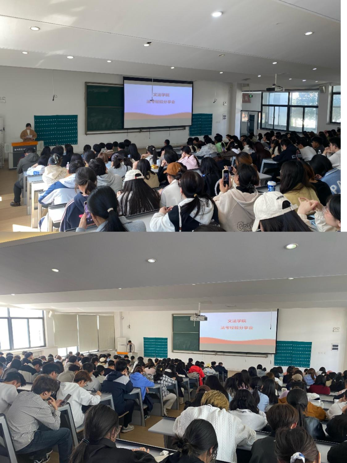 21级法学本科1班曹璨与2班的刘家铭两位优秀毕业生代表进行了精彩的法考经验分享。他们从备考规划、资料选择、时间管理、心态调整等多个维度,系统全面地介绍了自己的成功经验,为备考法考的学弟学妹们提供了参考。