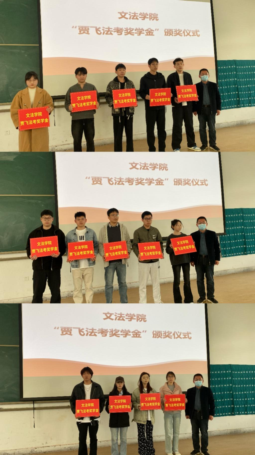 段丰乐经理为通过法考的毕业生代表颁发了“贾飞法考奖学金”,对他们表示了热烈祝贺。