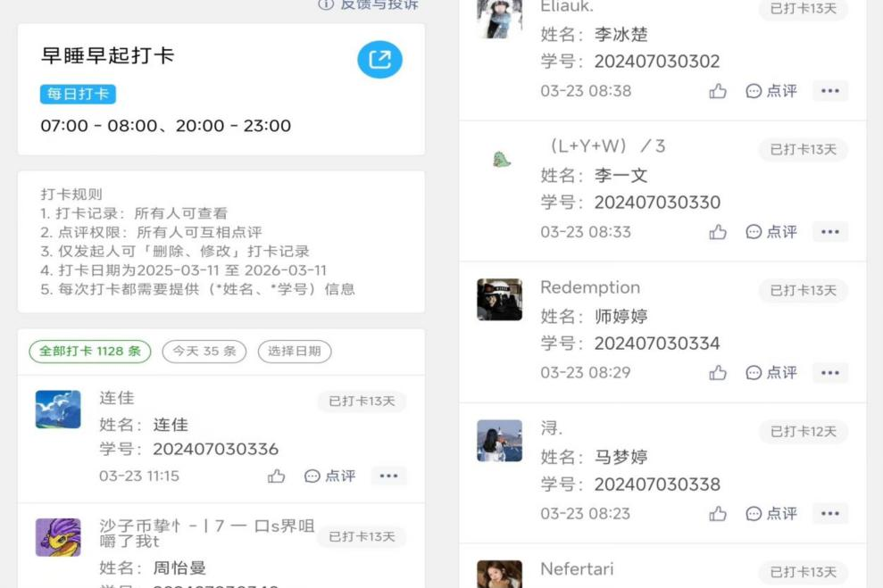 为了更好地响应本次文明礼貌月“文明礼貌从睡眠开始”的主题活动,365VIP英国上市官网各班还根据各班实际,创新“21天睡眠打卡”活动的形式,通过早晚两个时间段的线上监督,帮助员工养成规律作息习惯。21天养成一个好习惯,相信在此次文明礼貌月的一系列活动下,同学们都能够养成一个良好的睡眠习惯,从而为自己学习打下一个更加坚固的基础。