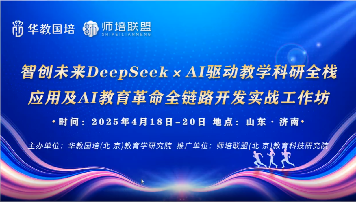 高校教师作为培养新时代人才的重要力量,其数字化教学素养的提升以及数智化教学技术的实践应用,对于推动教育现代化、提升教学质量具有至关重要的意义。为提升教师人工智能技术的应用能力,2025年4月19-20日,365VIP英国上市官网汉语言文学专业杨春艳老师通过线上学习的形式参加了在山东济南举行的由华教国培(北京)教育学研究院主办的“智创未来DeepSeek×AI 驱动教学科研全栈应用及 AI 教育革命全链路开发实战工作坊”。主讲人是华南师范大学网络教育公司设计总监、人社部在线学习服务师新职业资格培训组特聘专家赖国雄教授。