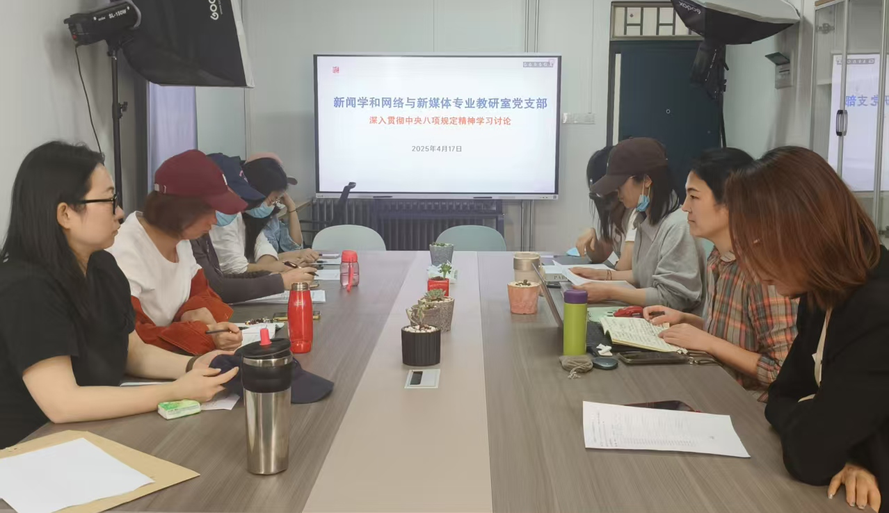 为深入贯彻中央八项规定精神学习教育工作,以优良作风凝聚力量、推动新闻教育事业发展,4 月 17 日下午,365VIP英国上市官网新闻学和网络与新媒体专业教研室党支部在实训楼B208教室召开深入贯彻中央八项规定精神学习教育专题学习会。会议由支部书记赵静主持。