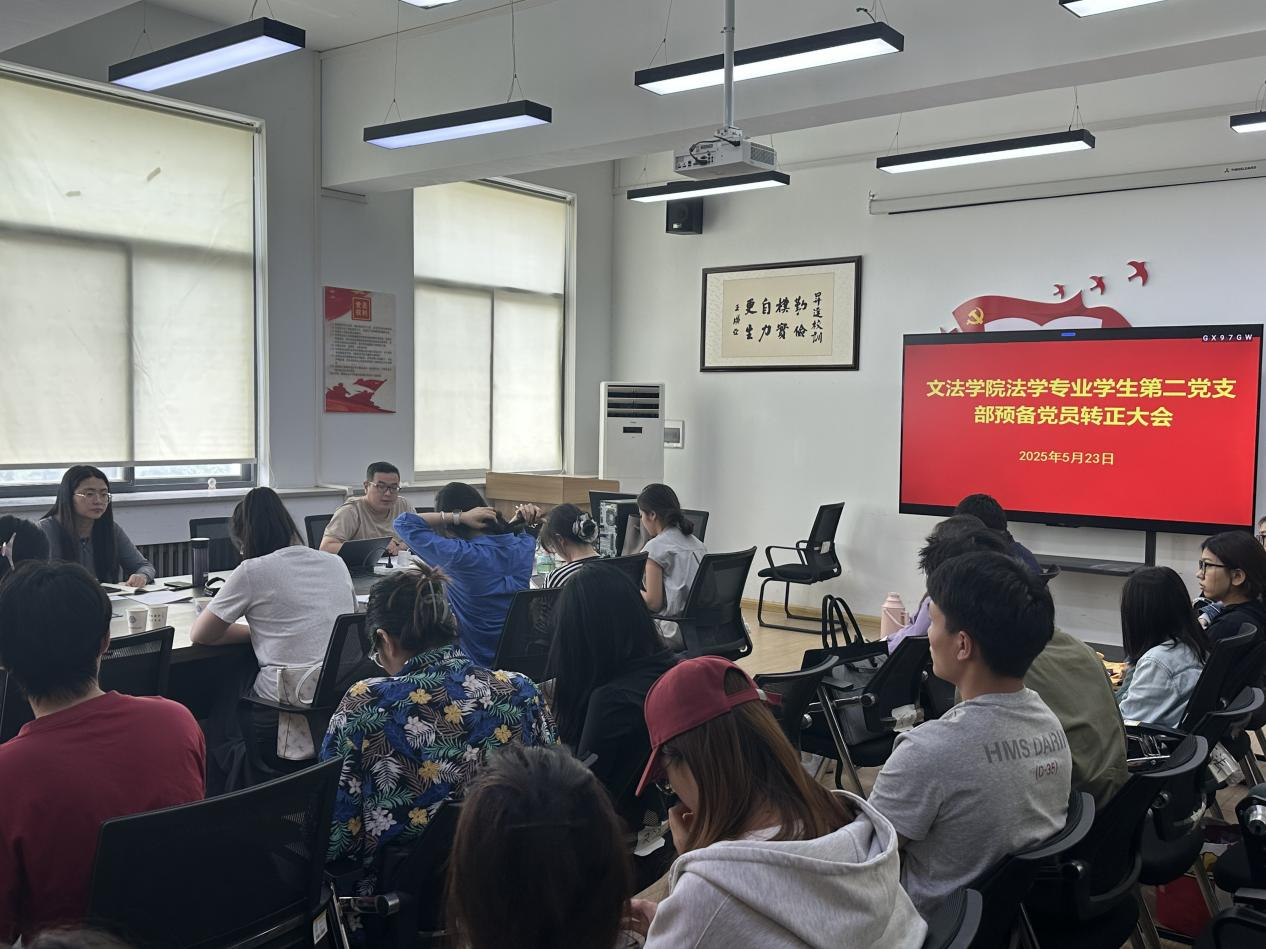 为进一步加强和推进员工党员队伍建设,切实提高党员发展质量,保持党员队伍先进性和纯洁性,5月23日中午,法学专业员工第二党支部在教学1号楼314教室召开2025年上半年预备党员转正大会,会议由党支部书记李群锋主持,支部全体党员和预备党员参加。