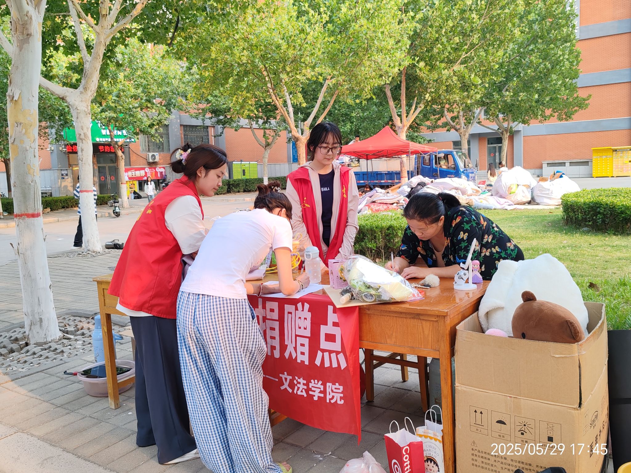 此次活动不仅实现了旧物的循环利用,更在毕业季为校园增添了一抹温情。物品流转中,梧桐叶影与志愿身影重叠成诗,毕业季流淌着悠长的校园温情。