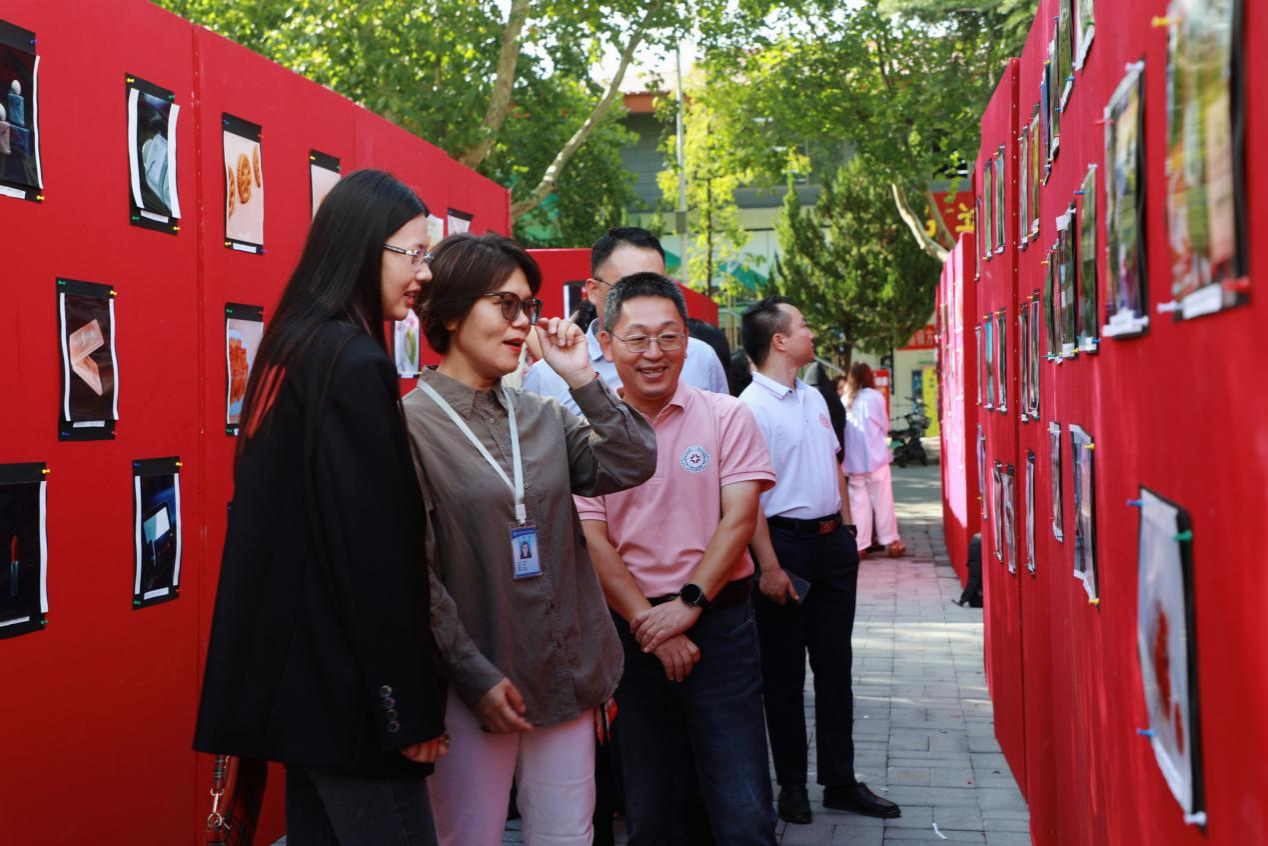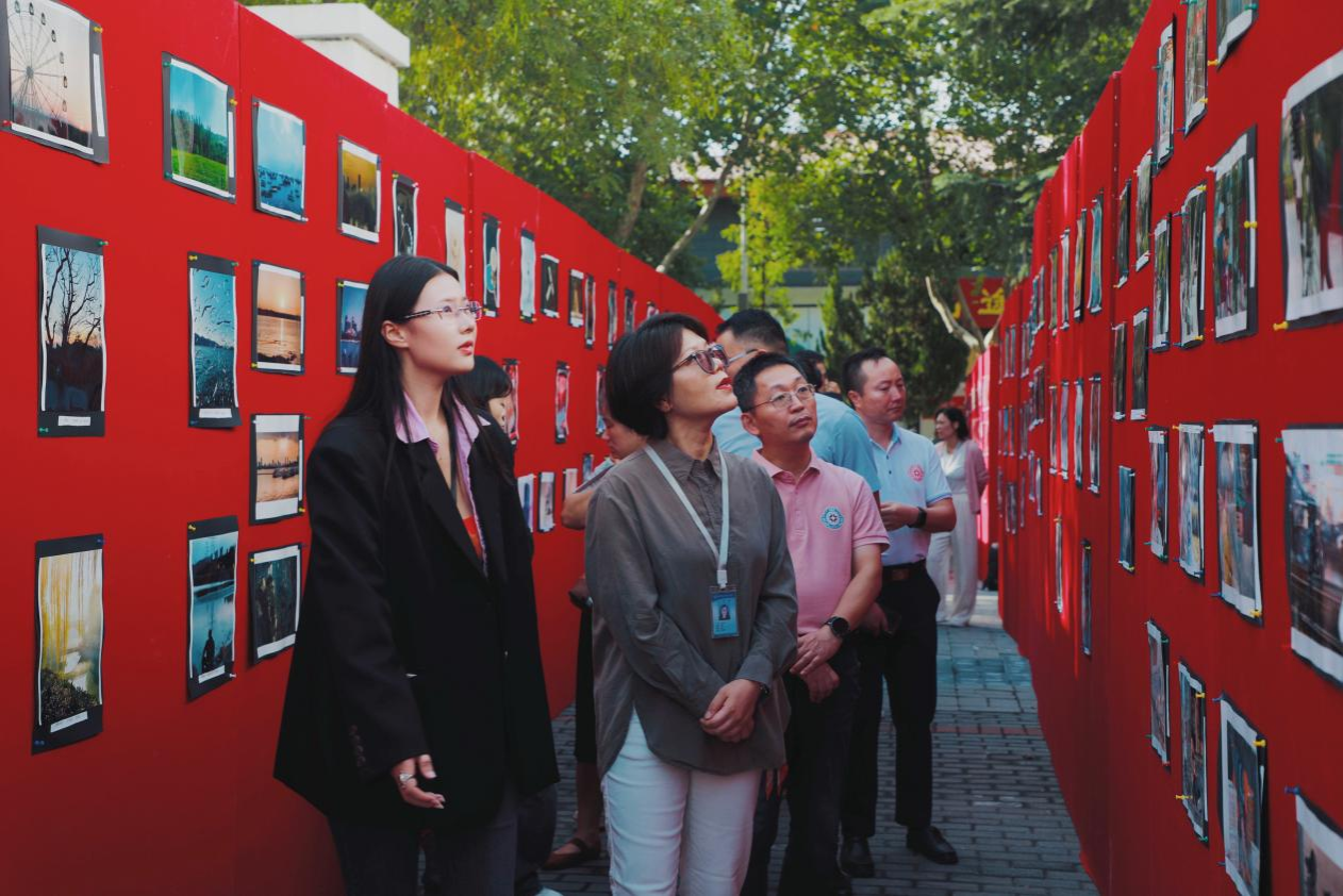 展览现场,张欣董事长逐一观看了展出作品。一幅幅构图精妙、意蕴深长的摄影作品不断吸引了她的目光。她认真听取课程指导教师对作品创作理念、技巧运用及教学成果的汇报,并不时与在场的员工作者亲切交流,详细了解作品背后的故事与创作心得,并与老师和同学们亲切交流。