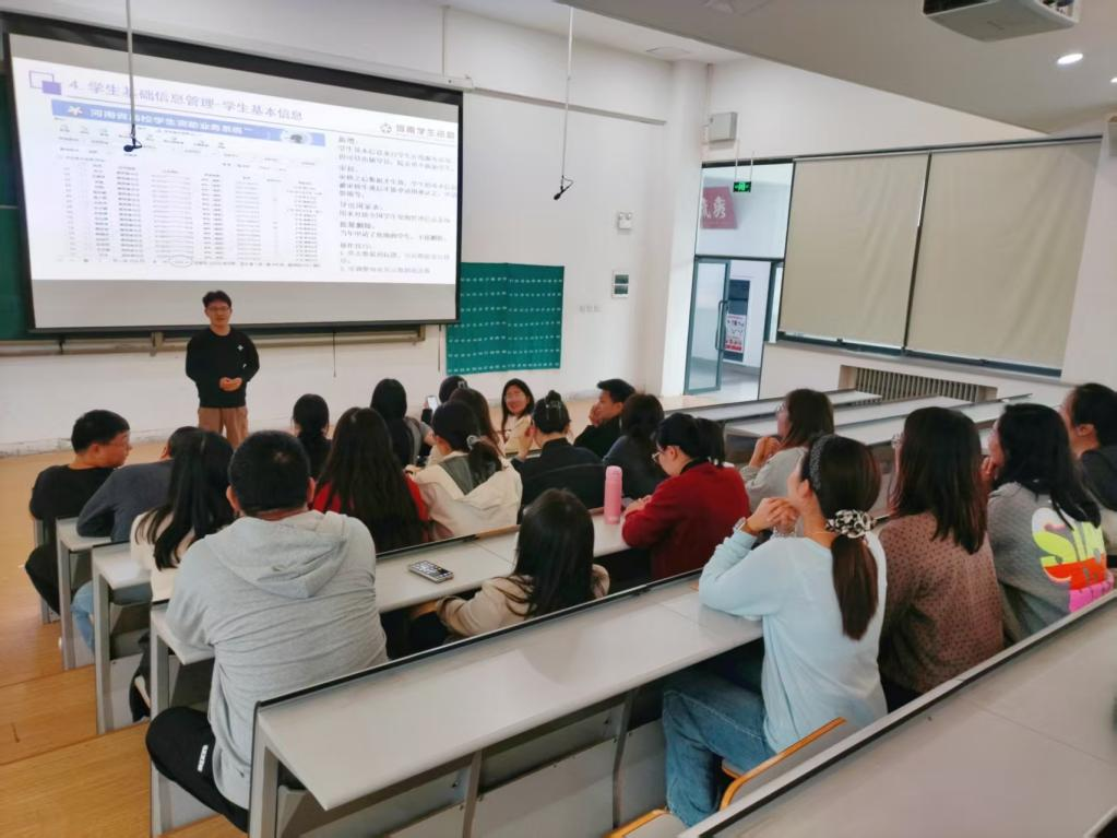 资助专员吴彦举结合校员工资助中心下发的员工信息完善、辅导员操作指南、河南省高校员工资助管理信息系统应用PPT、高校助学贷款员工在线注册和申请PPT、高校助学贷款业务系统应用PPT、国家奖助学金材料填报常见问题PPT、服兵役国家教育资助政策解读PPT等相关资料,与辅导员进行了共同探讨和问题解答,有效的提升了辅导员的工作能力。