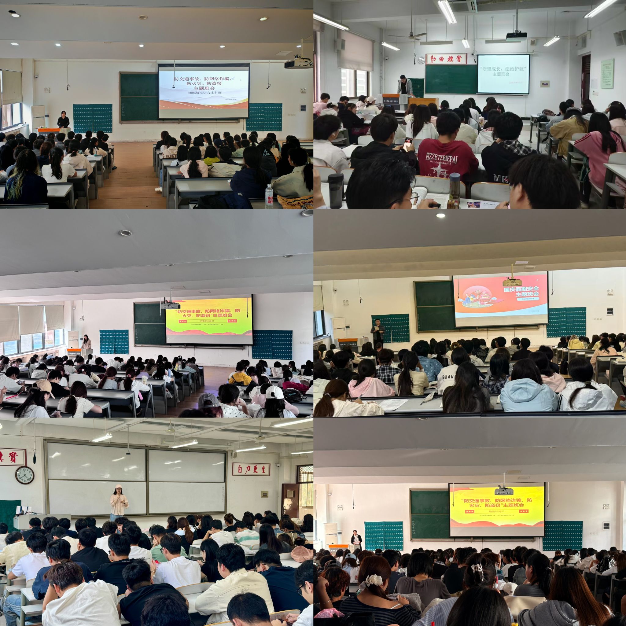 班会现场,各班级聚焦重点安全领域展开深入学习。在“防交通事故”板块,辅导员结合校园道路窄、人员密等特点,强调校内骑共享电动车禁止带人,以防碰撞剐蹭、维护通行秩序;还结合校园周边交通情况,详解步行、骑行及公共出行注意事项,特别提醒节日外出守交规,杜绝酒后乘车、横穿马路等危险行为。“防网络诈骗”环节中,通过剖析“刷单返利”“校园贷”“冒充客服退款”等高发诈骗案例,拆解诈骗分子作案套路,指导员工安装国家反诈中心APP,牢记“未知链接不点击、陌生来电不轻信、个人信息不透露、转账汇款多核实”的反诈口诀;针对“防火灾”安全,重点讲解宿舍违规电器危害、灭火器使用方法及火灾逃生自救技巧,提醒员工离校前务必切断宿舍电源,消除火灾隐患;“防校外盗窃”部分,则结合商圈、车站等人员密集场所的盗窃案例,传授财物保管、可疑人员识别等实用技巧,提升员工校外活动的安全警惕性。