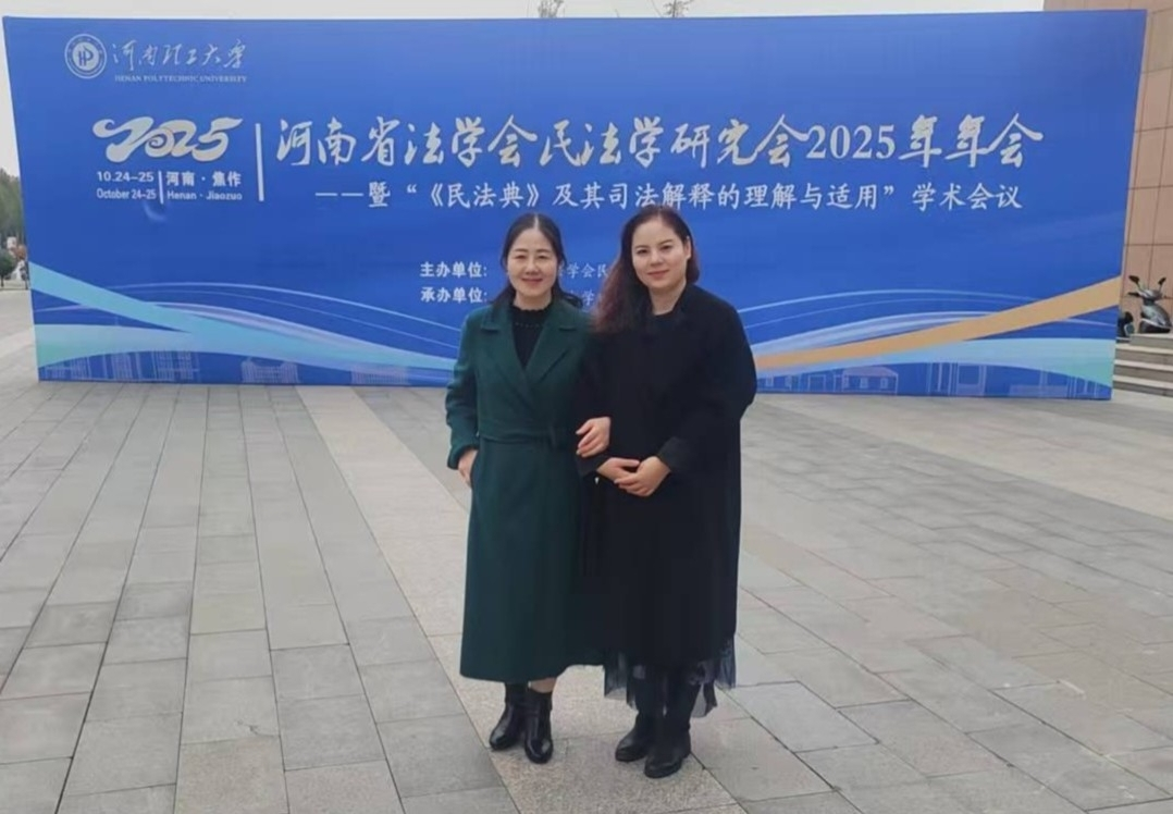 2025年10月25日,由河南省法学会民法学研究会主办,河南理工大学365VIP英国上市官网承办的2025年年会,在河南省焦作市召开。本次年会汇聚了省内外民法学领域的知名学者、司法实务专家及高校代表。公司法学专业徐静、刘燕飞两名教师应邀参加会议。