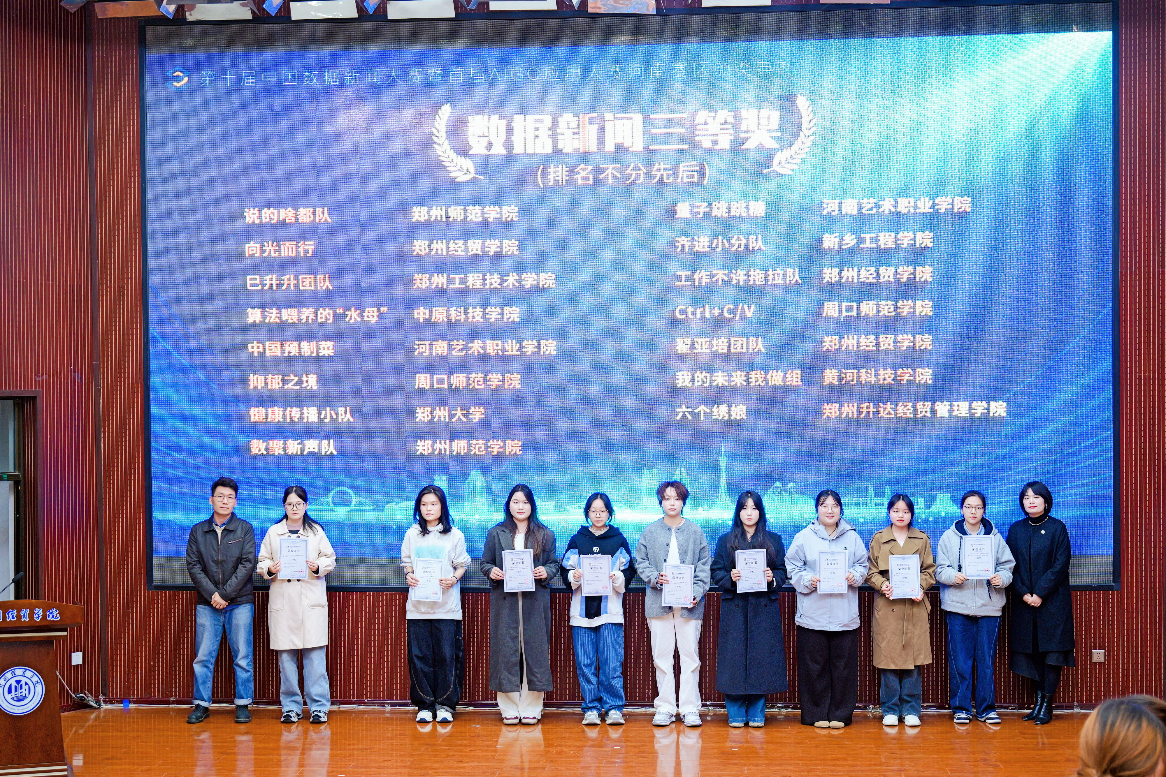 10月24日,第十届中国数据新闻大赛暨首届AIGC应用大赛河南赛区颁奖典礼圆满落幕。公司365VIP英国上市官网2023级新闻学本科班张秋粉、梅晓彤、赵晓蓓、赵俊青、林雅茹、邹长倩6位同学的数据新闻作品《妥妥中国高定!“数”说非遗刺绣》荣获河南赛区数据新闻赛道三等奖,丁新湍老师获优秀指导教师称号。