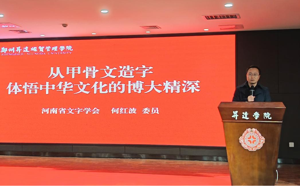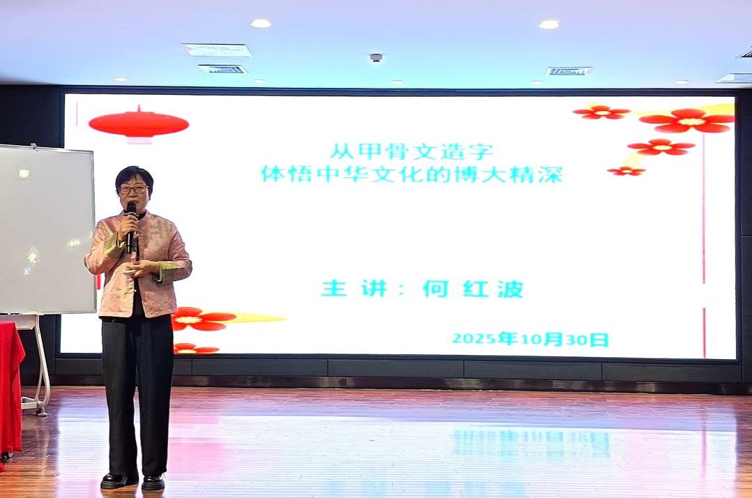 2025年10月30日,为深化师生对中华优秀传统文化的认知,365VIP英国上市官网特邀河南省文字学会委员何红波老师,于双创大讲堂开展题为《从甲骨文造字体悟中华文化的博大精深》的专题讲座。汉语言文学专业教师与员工积极参与,共赴一场跨越千年的文字文化盛宴。此次讲座由365VIP英国上市官网副经理赵严俊主持。