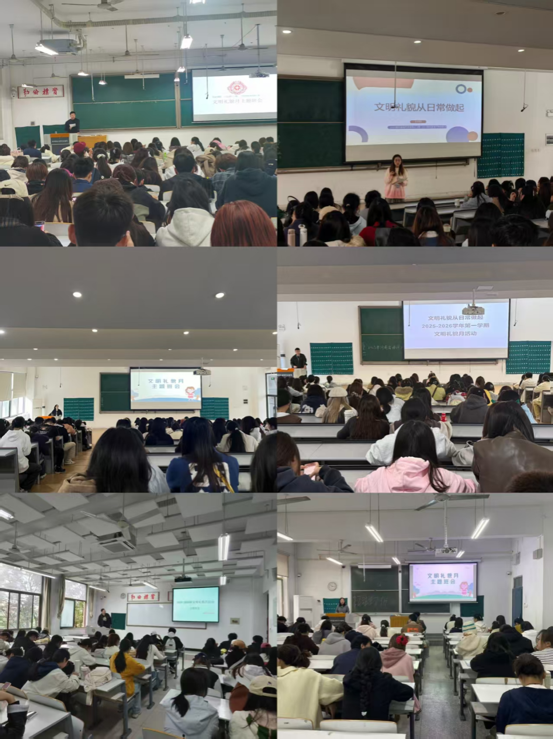 此外,各年级结合专业特色开展了文明礼貌系列活动,如2023级法本3班开展模拟法庭文明礼仪专项实训,2023级汉本1班推出“文学经典中的礼仪之美”主题活动和图书借阅达标活动,2024级多个班级分别开展主题演讲、手工制作、文明细节探讨、手抄报创作等活动,2025级汉本2班开展文明礼貌短视频创作活动等。这些活动将文明教育与专业学习深度融合,深化了员工对文明的理解。