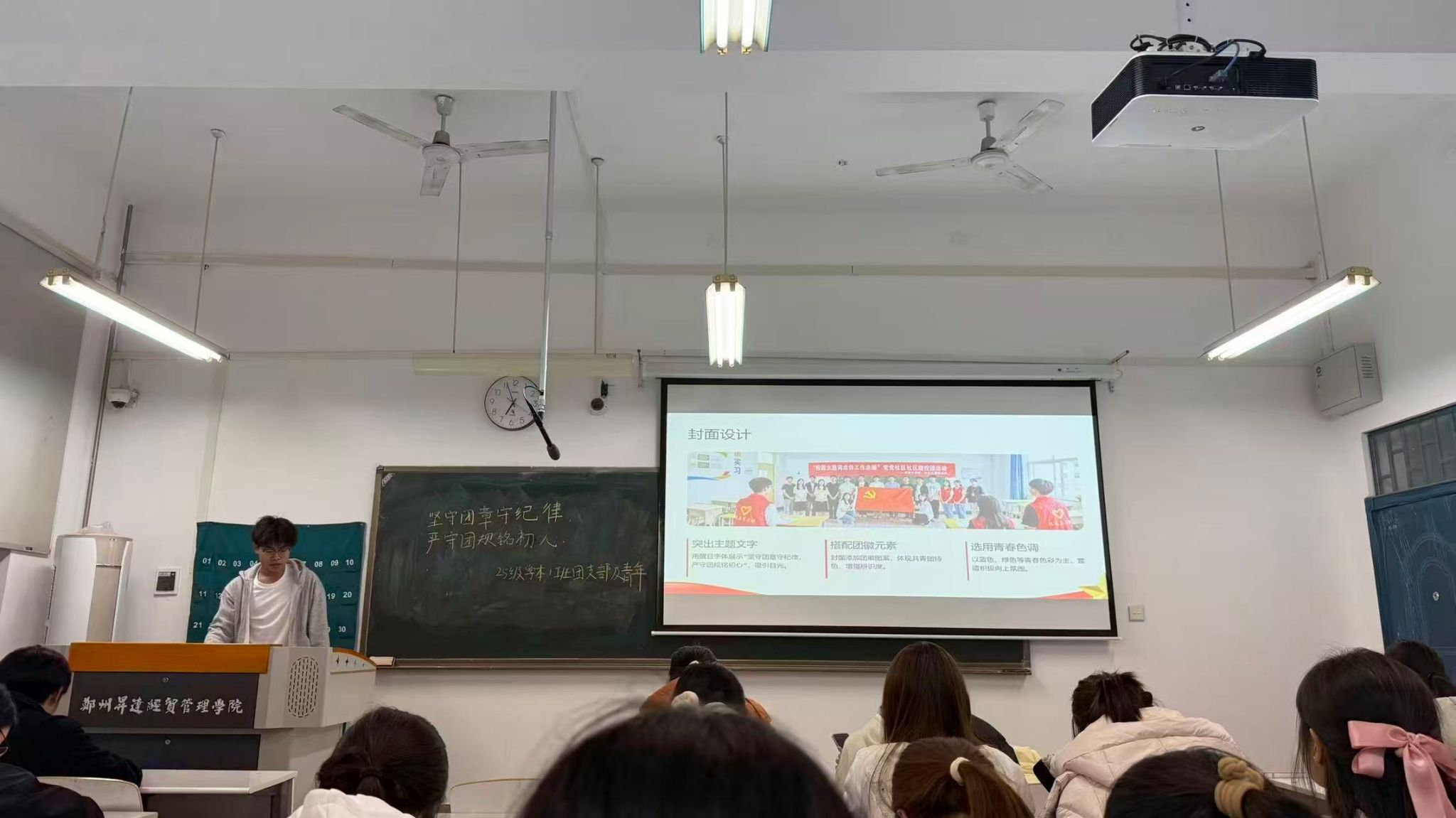 活动在庄严的团歌声中拉开序幕。郭恩霖以“纪律是青春远航的‘压舱石’”为主题引入相关内容,带领全体团员重点学习《中国共产主义青年团章程》中“团员”“纪律”章节内容。接着在主题分享环节中,团员代表樊烨华结合专业特色,以“师德规范中的纪律担当”为题,分享了如何将团的纪律要求融入实习实训、班级管理等日常学习生活中。她提出的“三查三改”行动倡议——“查学习态度,改敷衍心态;查行为规范,改松散习惯;查初心使命,改浮躁作风”,引发全体在场同学们的共鸣。紧接着在“团章知识抢答”互动环节,同学们围绕“团员必须履行的义务有几项、团员的权利有哪些”等问题展开热烈讨论,现场氛围活跃。活动最后,全体团员面向团旗庄严宣誓,誓词铿锵有力,展现了新时代青年坚定的理想信念。