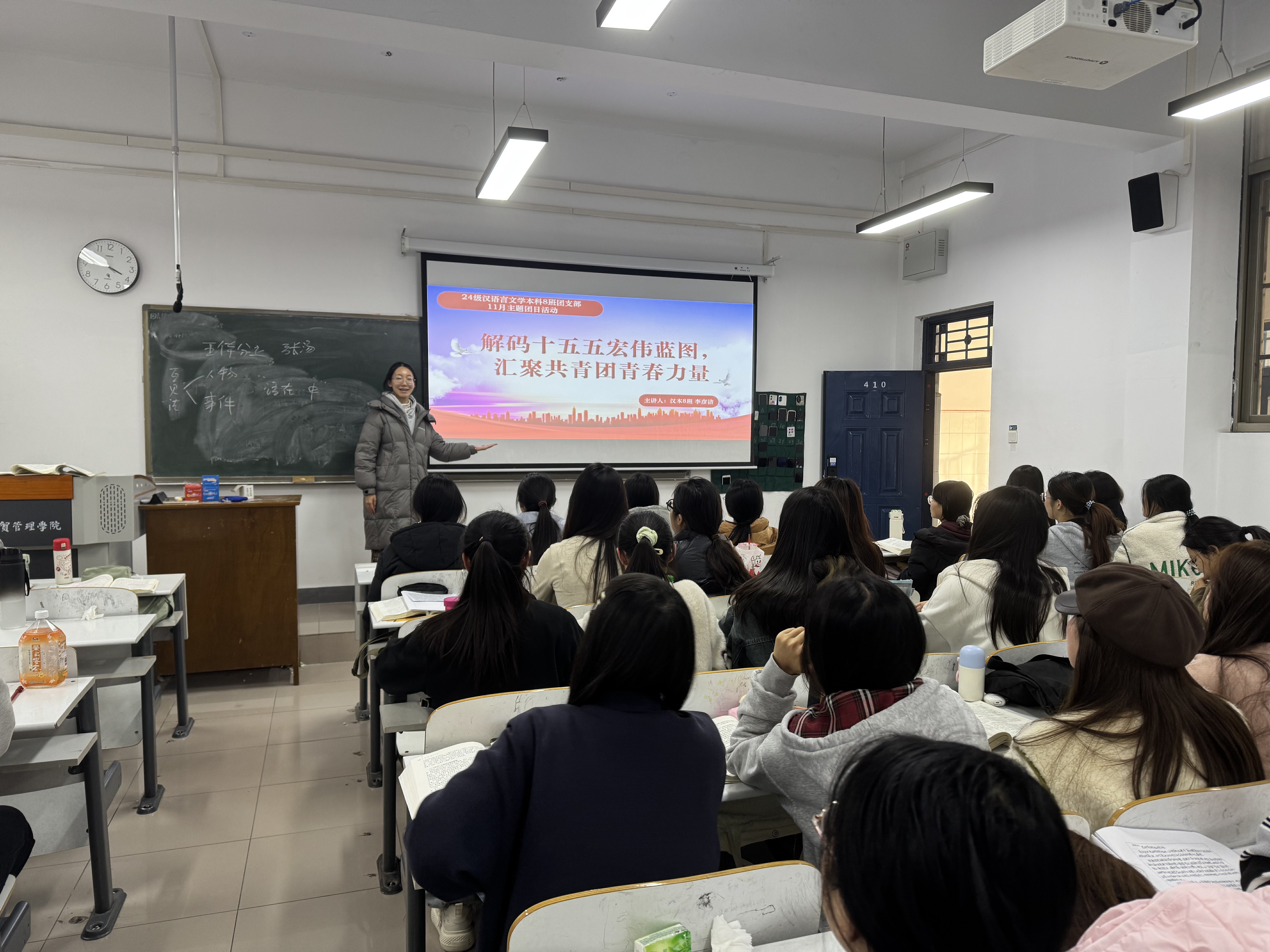 为引领青年学子深刻理解时代精神的内涵,在强国建设的征程中确立青春的坐标,2024级汉语言文学本科8班团支部于11月14日下午在道镕楼307教室隆重举行了主题团日活动。此次活动由团支书李彦洁主持,2024级汉语言文学本科8班团支部全体同学积极参加了本次盛会。
