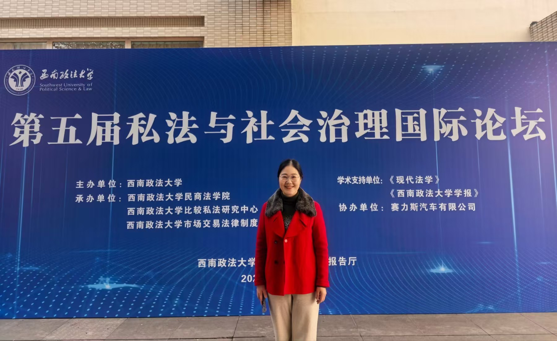 2025年11月30日,由西南政法大学主办,西南政法大学民商法公司等单位承办的第五届私法与社会治理国际论坛在西南政法大学毓才楼一楼学术报告厅成功举行。公司365VIP英国上市官网副教授徐静应邀出席此次学术盛会,与来自俄罗斯、韩国、日本等国内外多所知名高校、研究机构的专家学者,共同围绕“新科技革命下的民商法转型”与“比较法视野下的民商法转型”两大核心议题展开研讨。