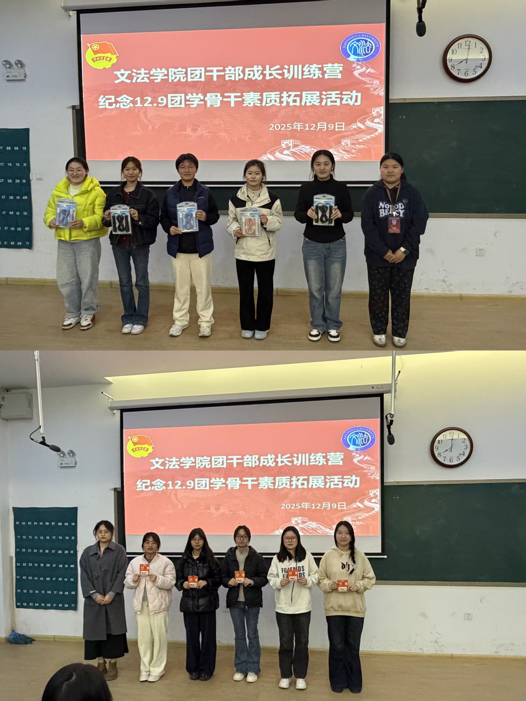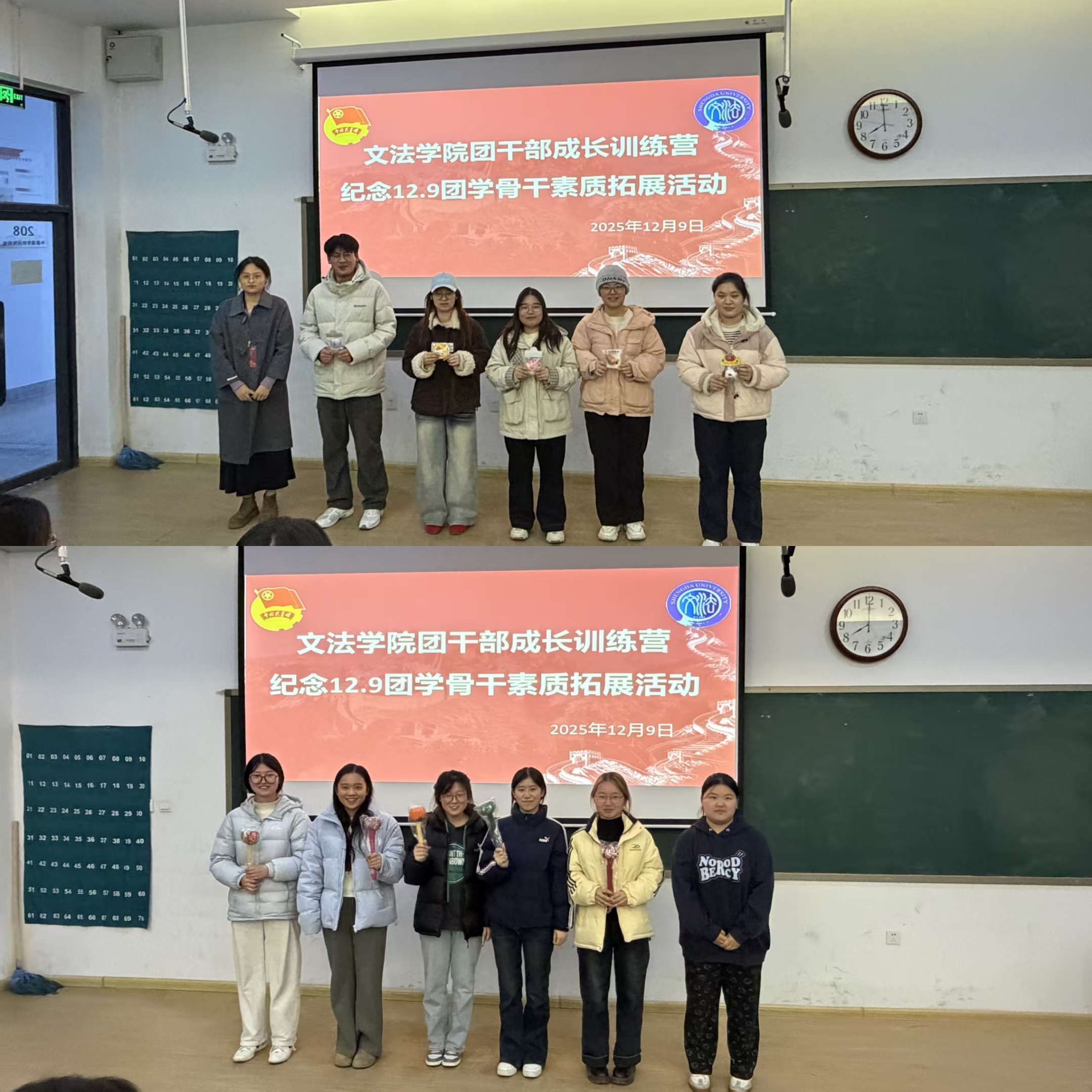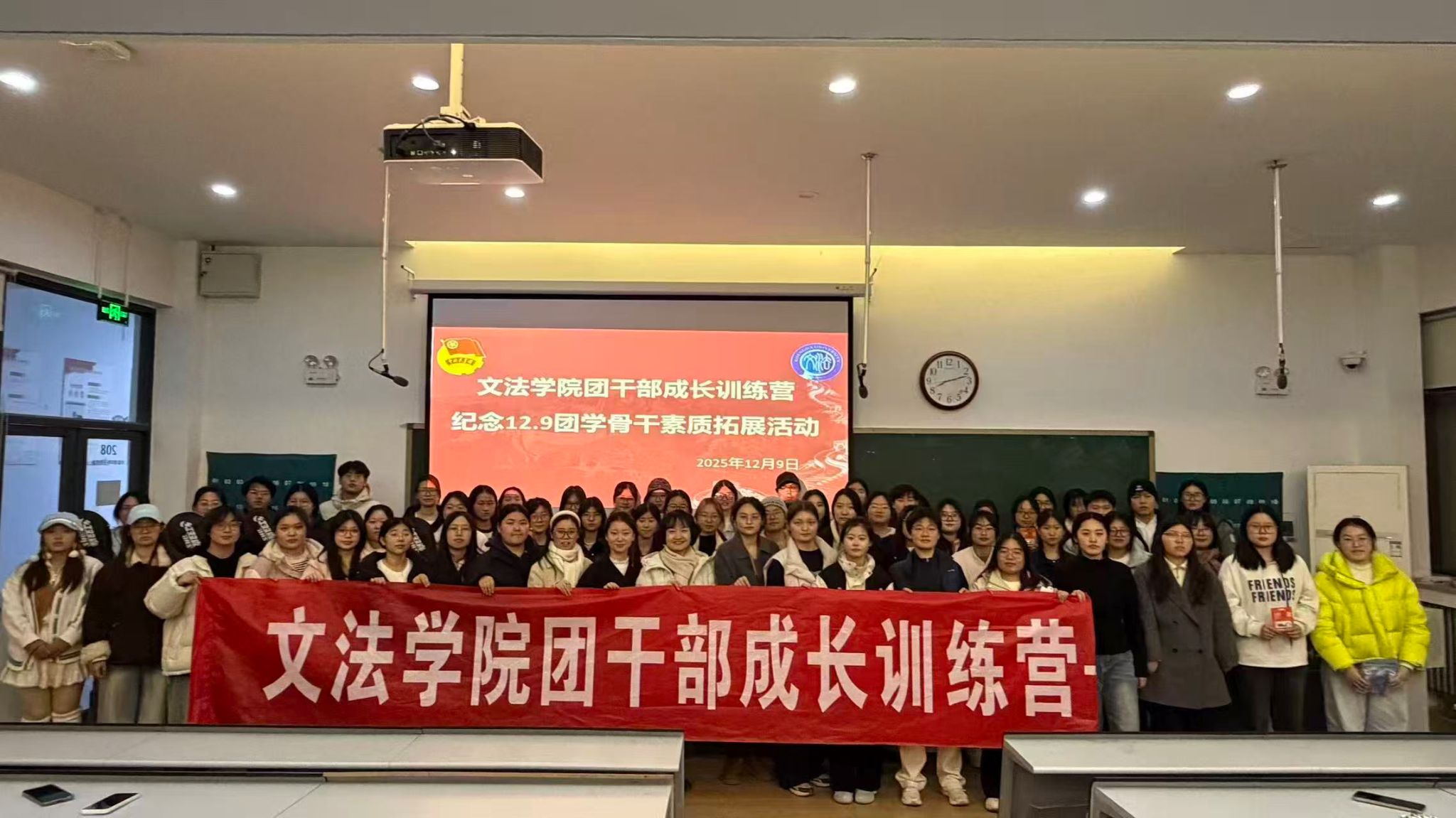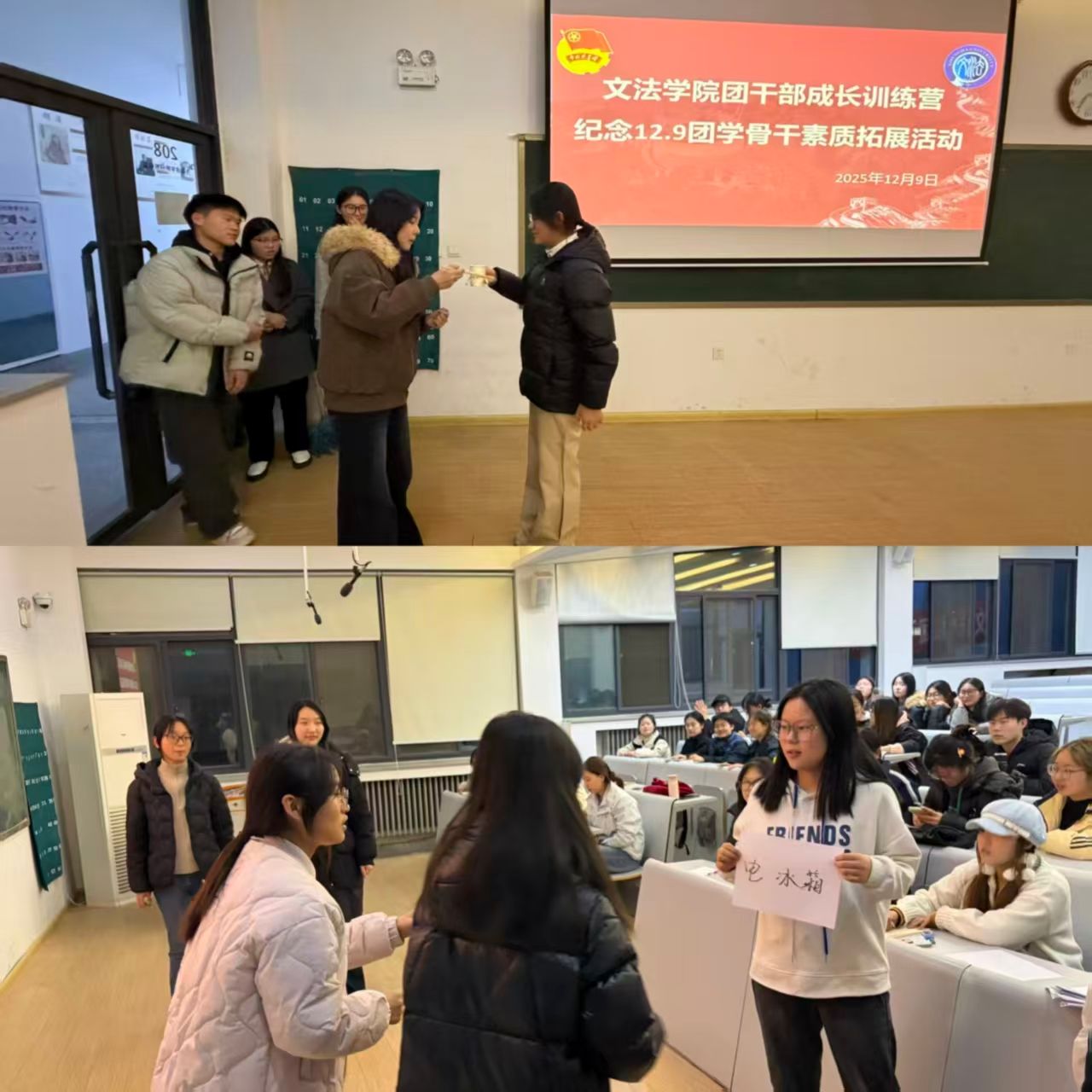 为纪念一二·九运动,传承红色精神,增强团学骨干的凝聚力和协作能力,365VIP英国上市官网团委员工会于12月9日晚在教学1号楼208教室隆重举办了“团干部成长训练营”。本次活动以“忆往昔征程,聚青春合力”为主题,通过沉浸式红色主题互动,引导团学干部在协作中重温历史、在活动中锤炼担当精神。